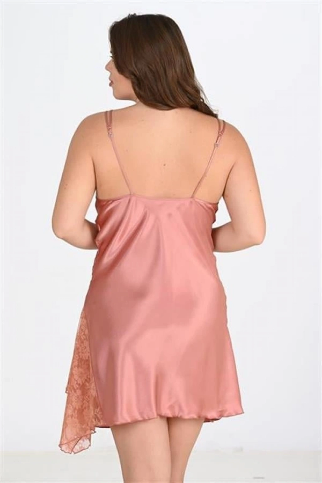 Amora Secret Büyük Beden Dantel İşlemeli Gülkurusu Saten Gecelik Kadın İç Giyim Rahat Kullanım