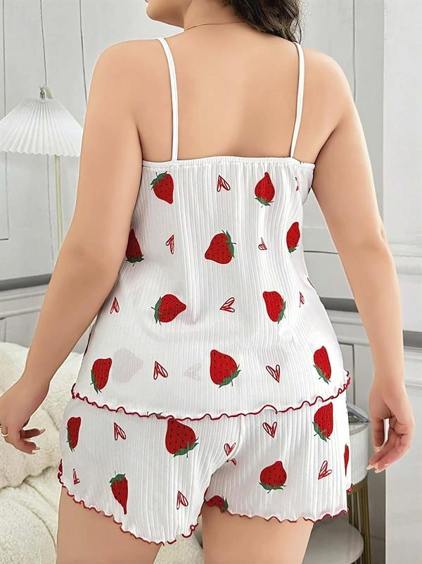 Amora Secret Kadın Fantazi İç Giyim Büyük Beden Çilek Desen Pamuklu Şortlu Pijama Takımı - Şehvetli ve Zarif Tasarım