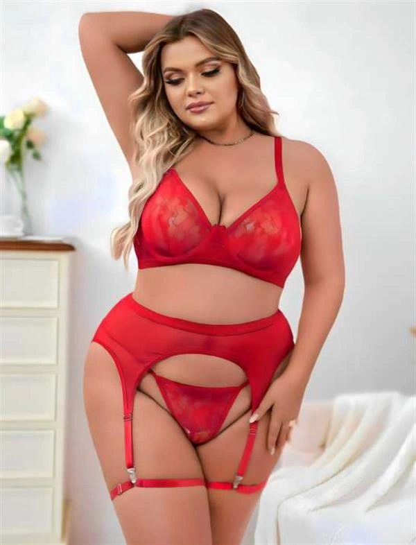 Amora Secret Kadın Fantazi İç Giyim Büyük Beden Kırmızı Dantel İşlemeli Fantezi Jartiyer Takımı - Şehvetli ve Zarif Tasarım