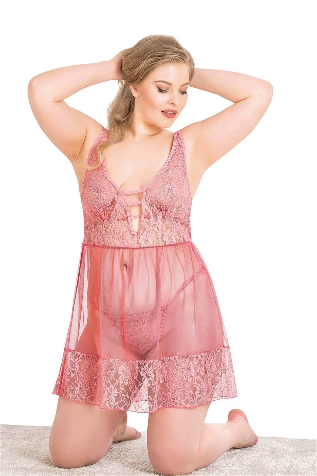 Aria's Closet Büyük Beden Mercan Kısa Tül Gecelik 3020