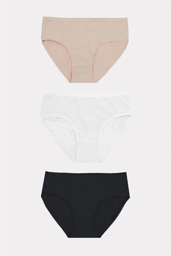 Amora Secret Kadın Fantazi İç Giyim Büyük Beden Pamuklu Siyah Beyaz Ten Rengi 3'lü Külot - Şehvetli ve Zarif Tasarım
