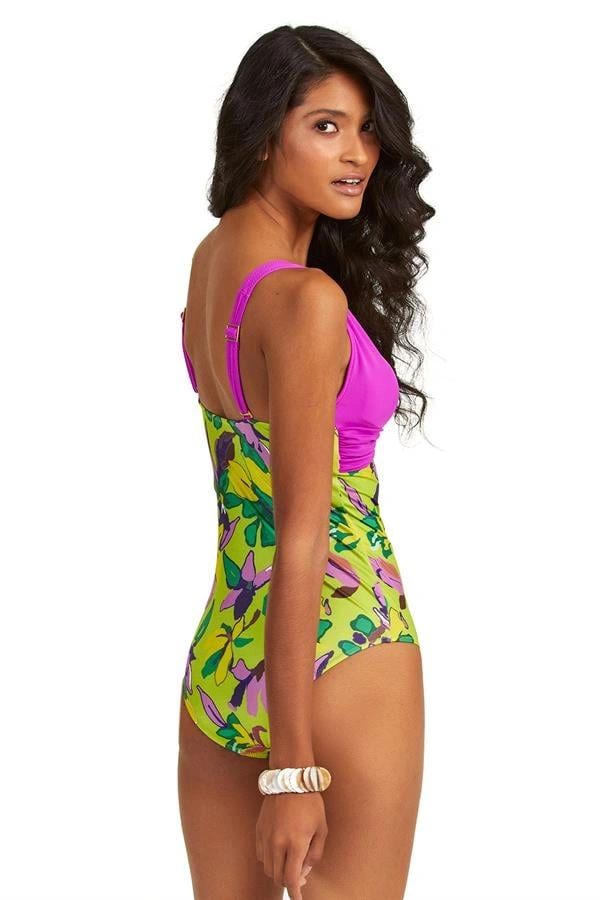 Amora Secret Kadın Fantazi İç Giyim Büyük Beden Yeşil Çiçek Desenli Drapeli Mayo - Şehvetli ve Zarif Tasarım