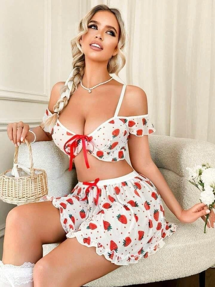 AmoraSecret AmoraSecret Çilek Desenli Fantezi Etekli Takım