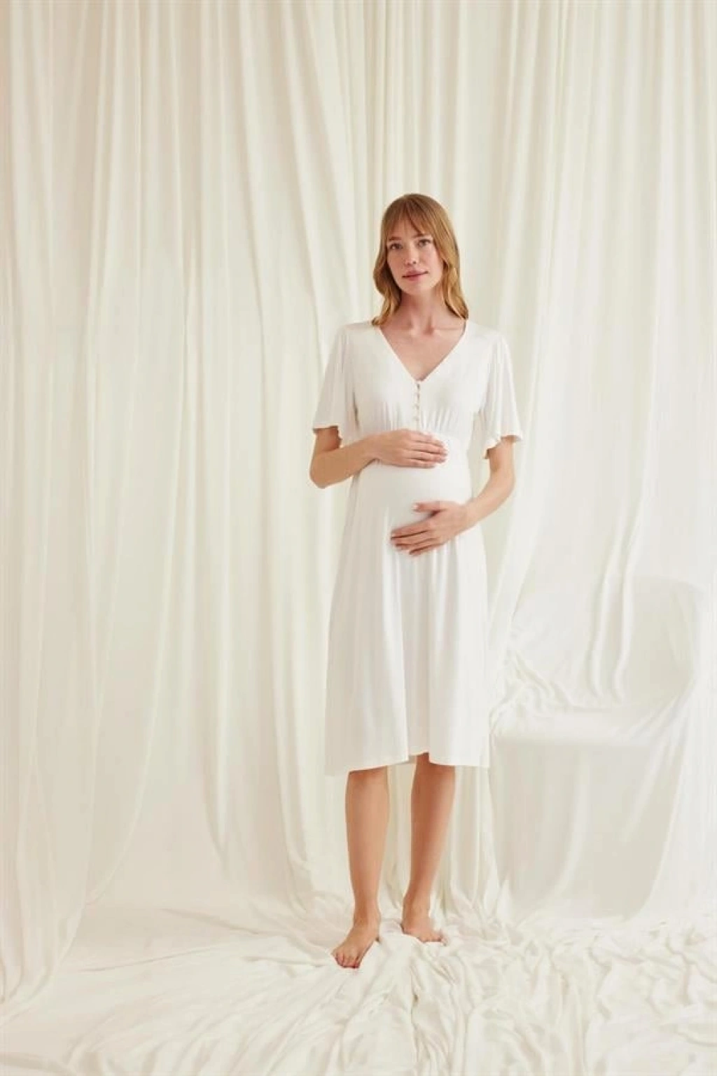 Amora Secret Dantelli Önü Düğmeli Hamile Lohusa Gecelik Kadın İç Giyim Zarif Görünüm
