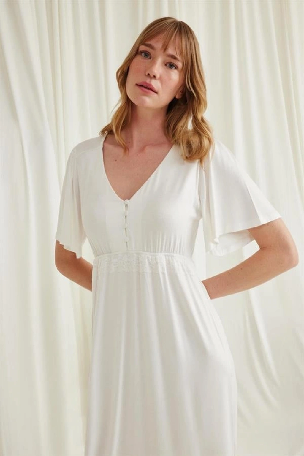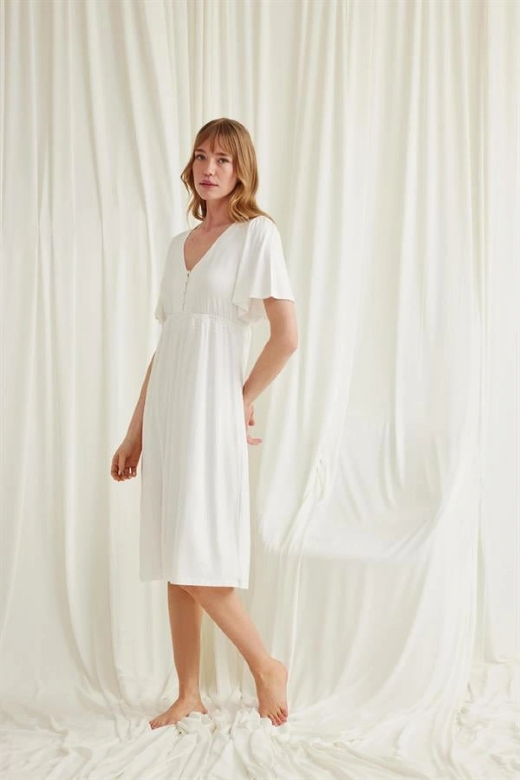 Amora Secret Dantelli Önü Düğmeli Hamile Lohusa Viskon Gecelik Kadın İç Giyim Zarif Görünüm