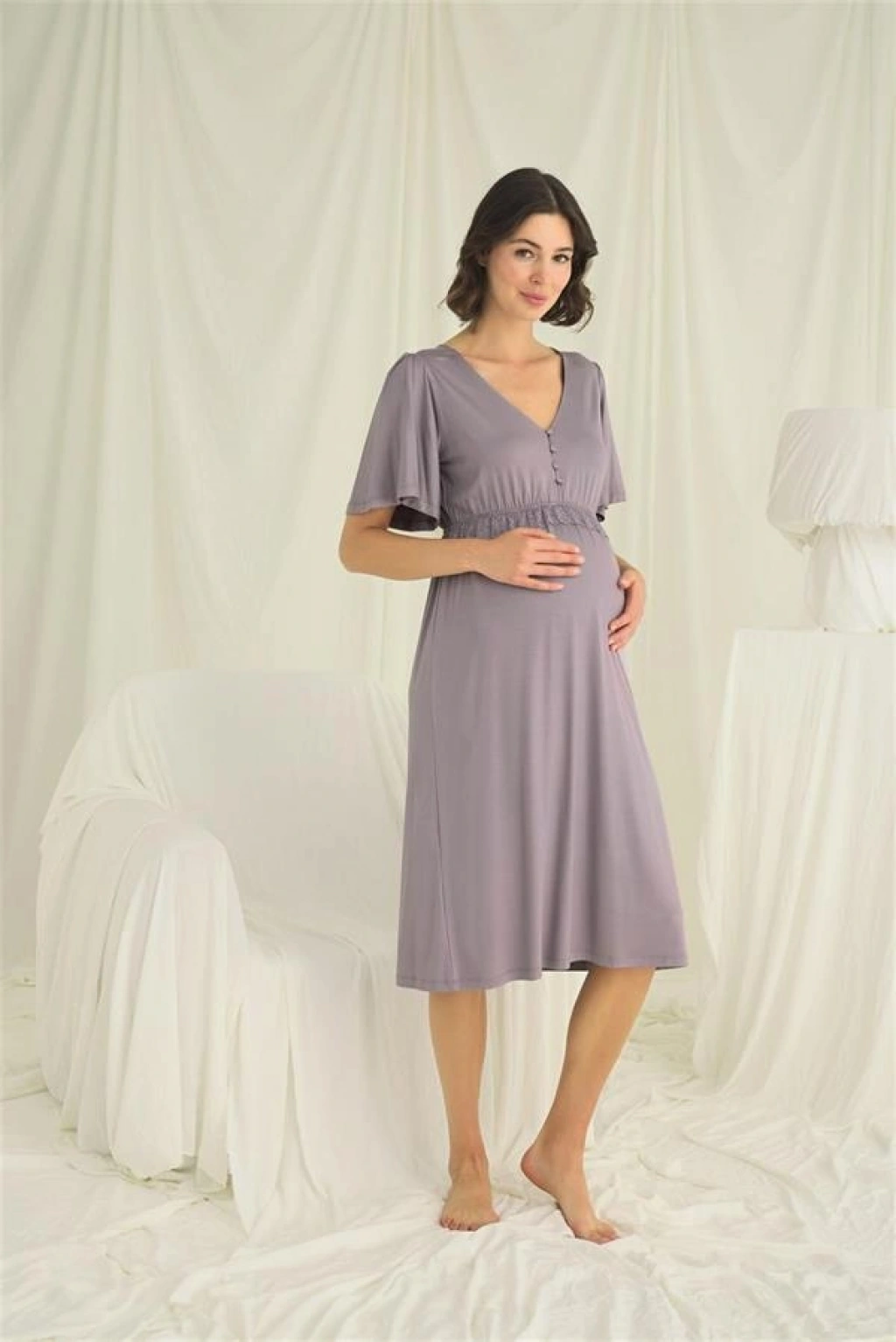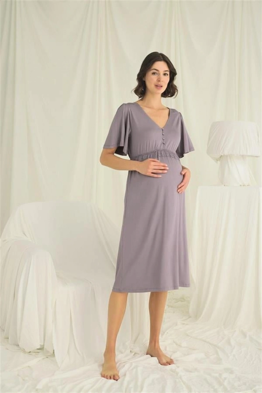 Amora Secret Dantelli Önü Düğmeli Hamile Lohusa Viskon Gecelik Kadın İç Giyim Rahat Kullanım