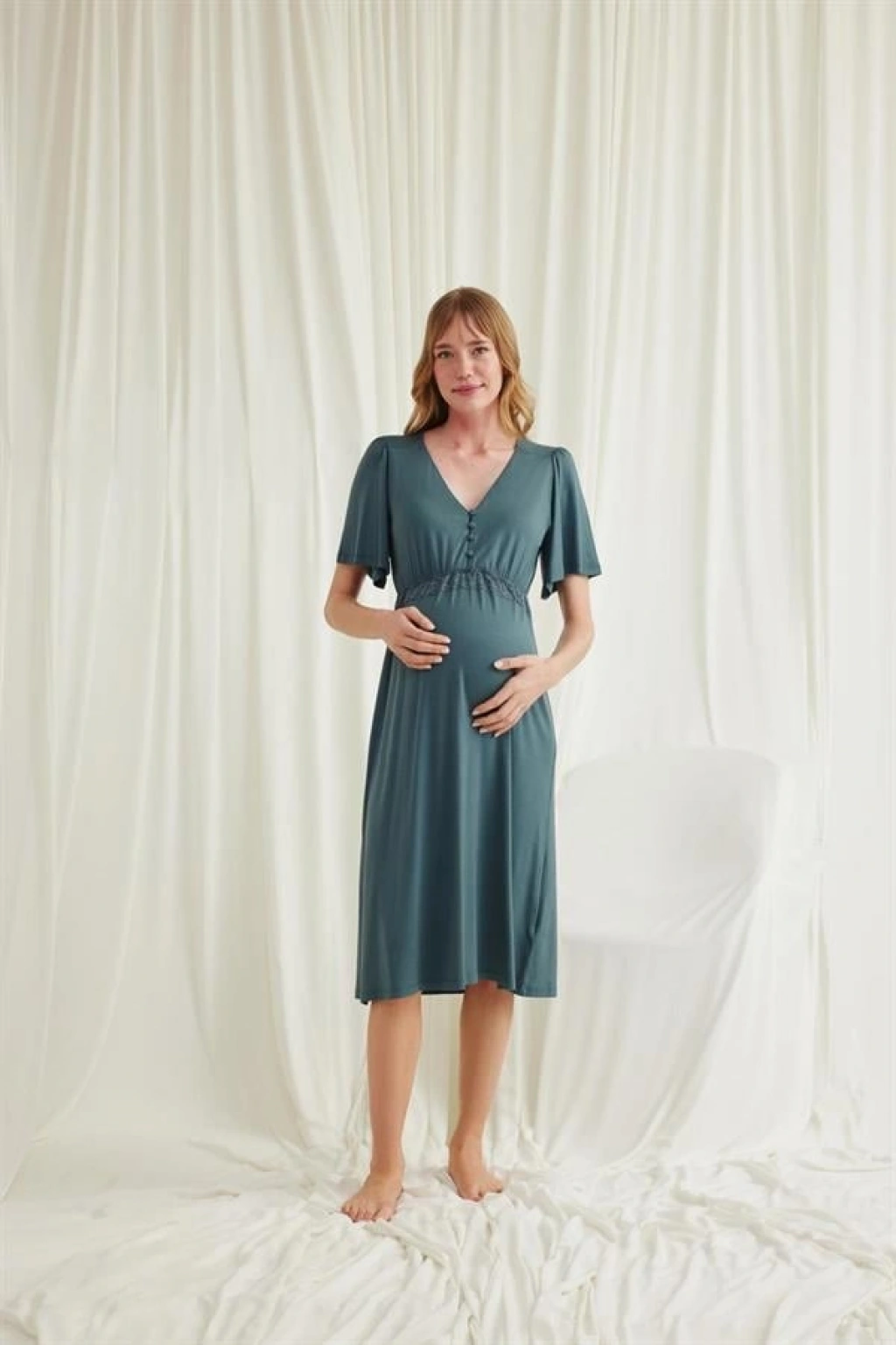 Amora Secret Dantelli Önü Düğmeli Hamile Lohusa Gecelik Kadın İç Giyim Zarif Görünüm