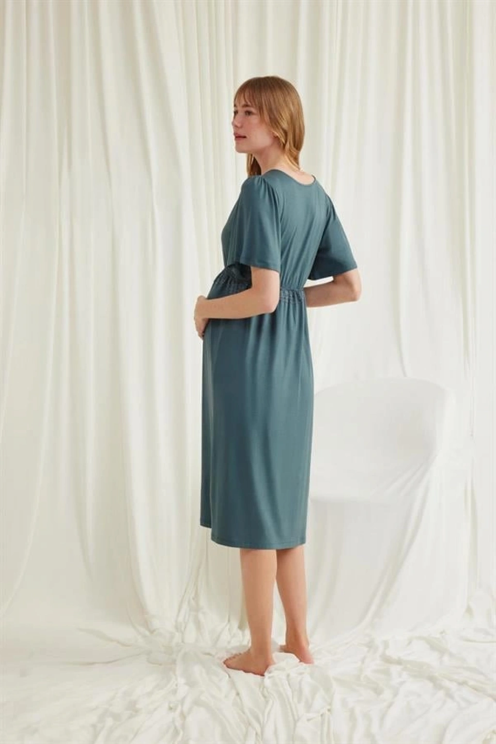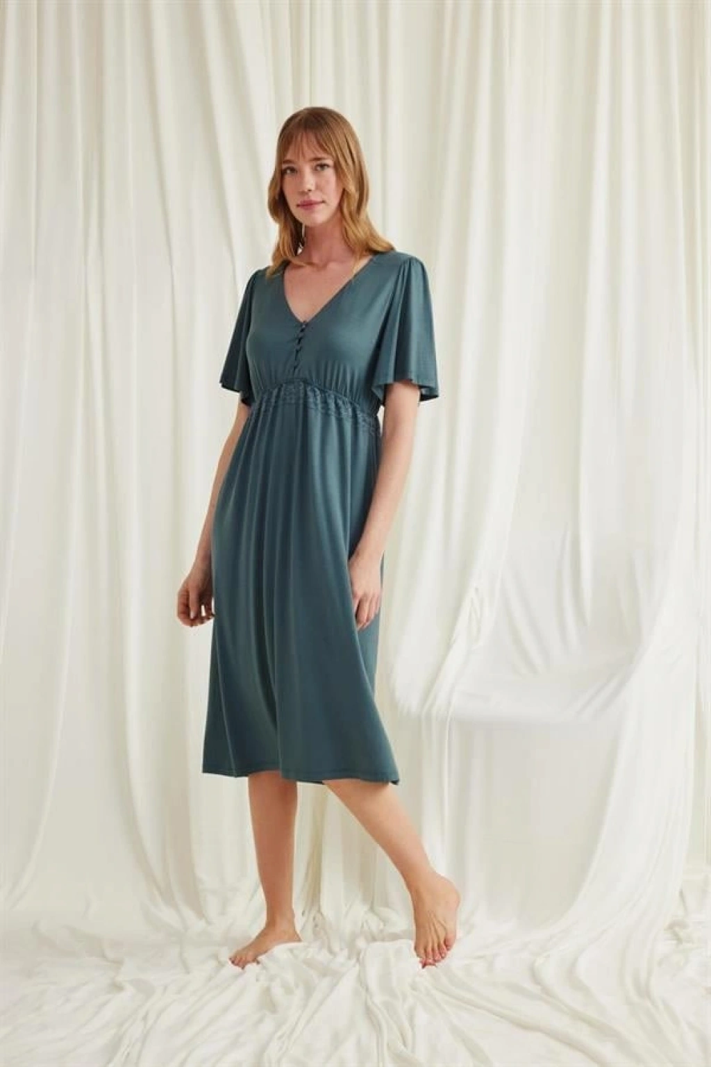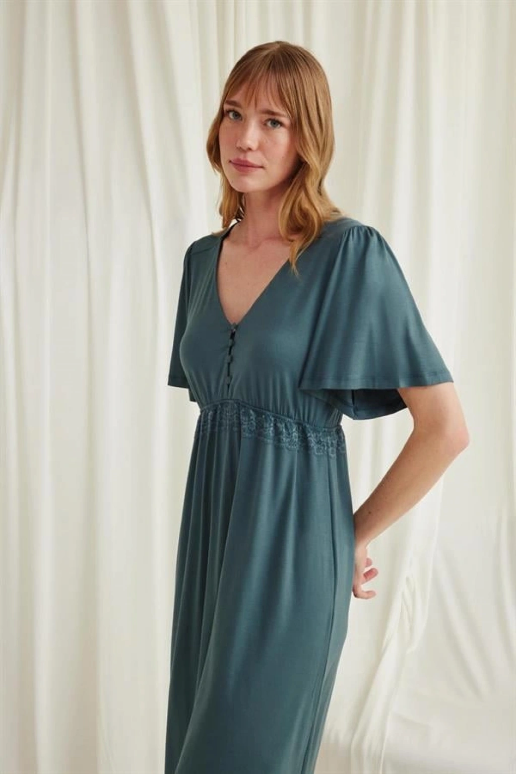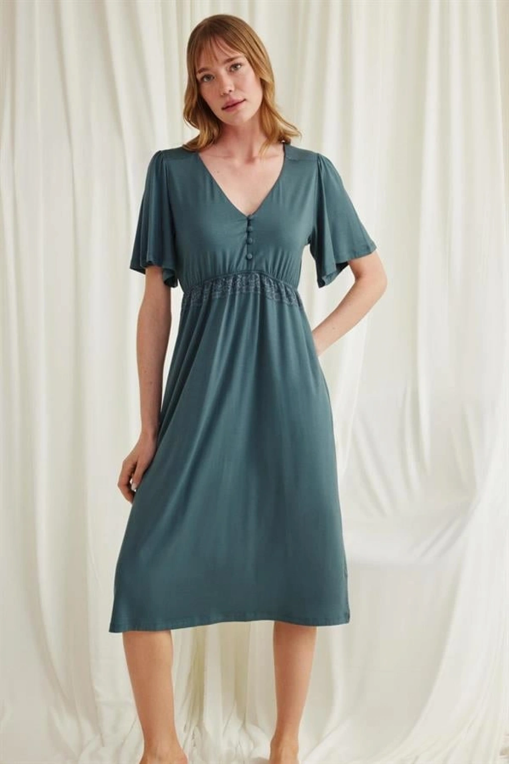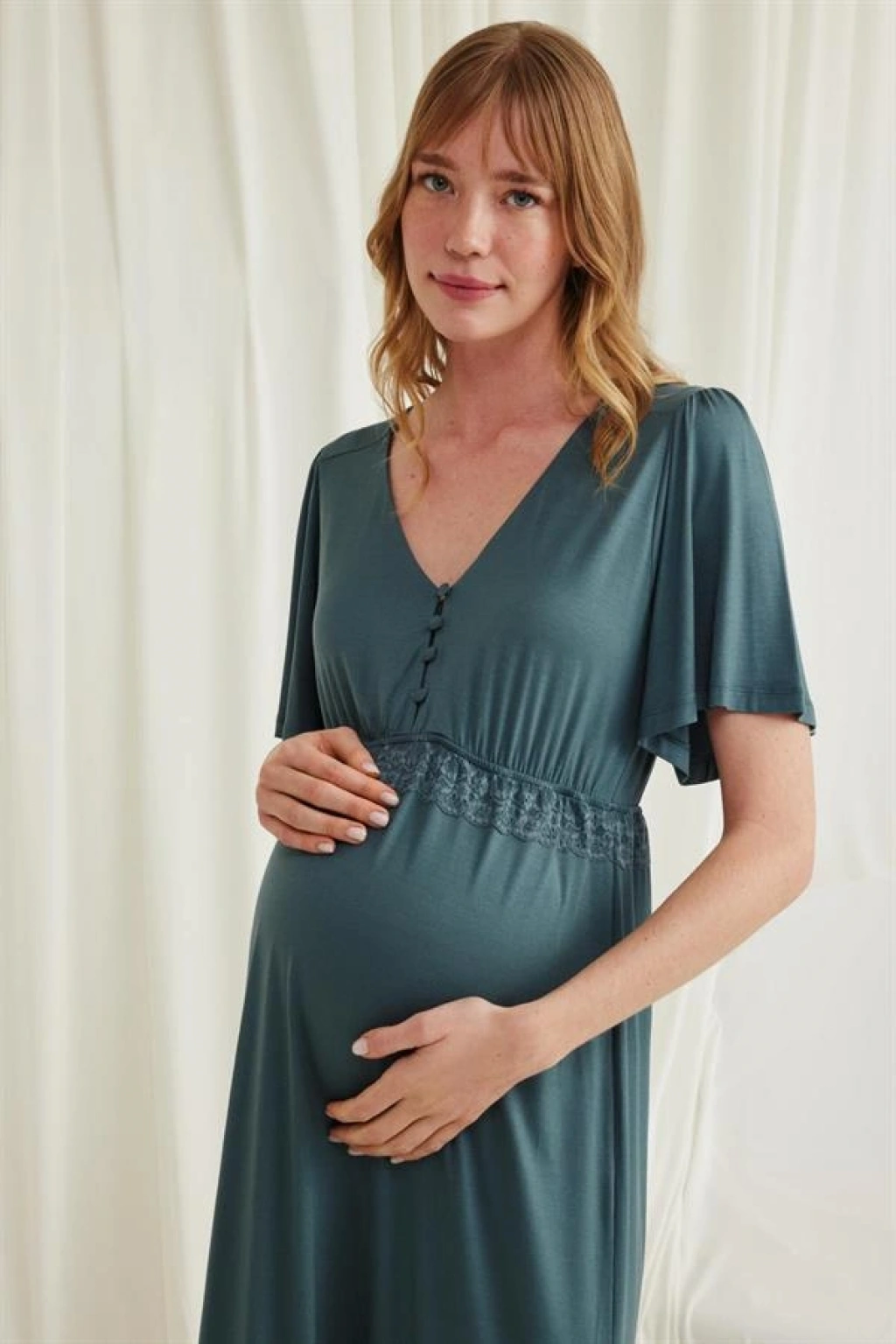 Amora Secret Dantelli Önü Düğmeli Hamile Lohusa Viskon Gecelik Kadın İç Giyim Zarif Görünüm