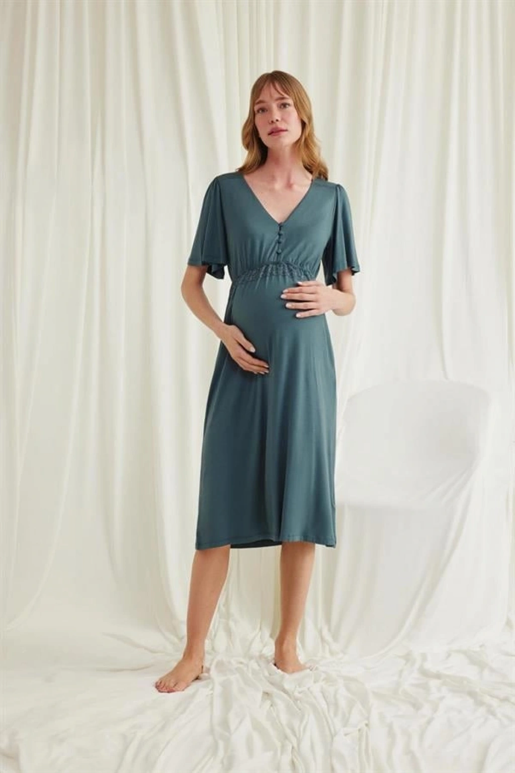Amora Secret Dantelli Önü Düğmeli Hamile Lohusa Viskon Gecelik Kadın İç Giyim Şık Tasarım