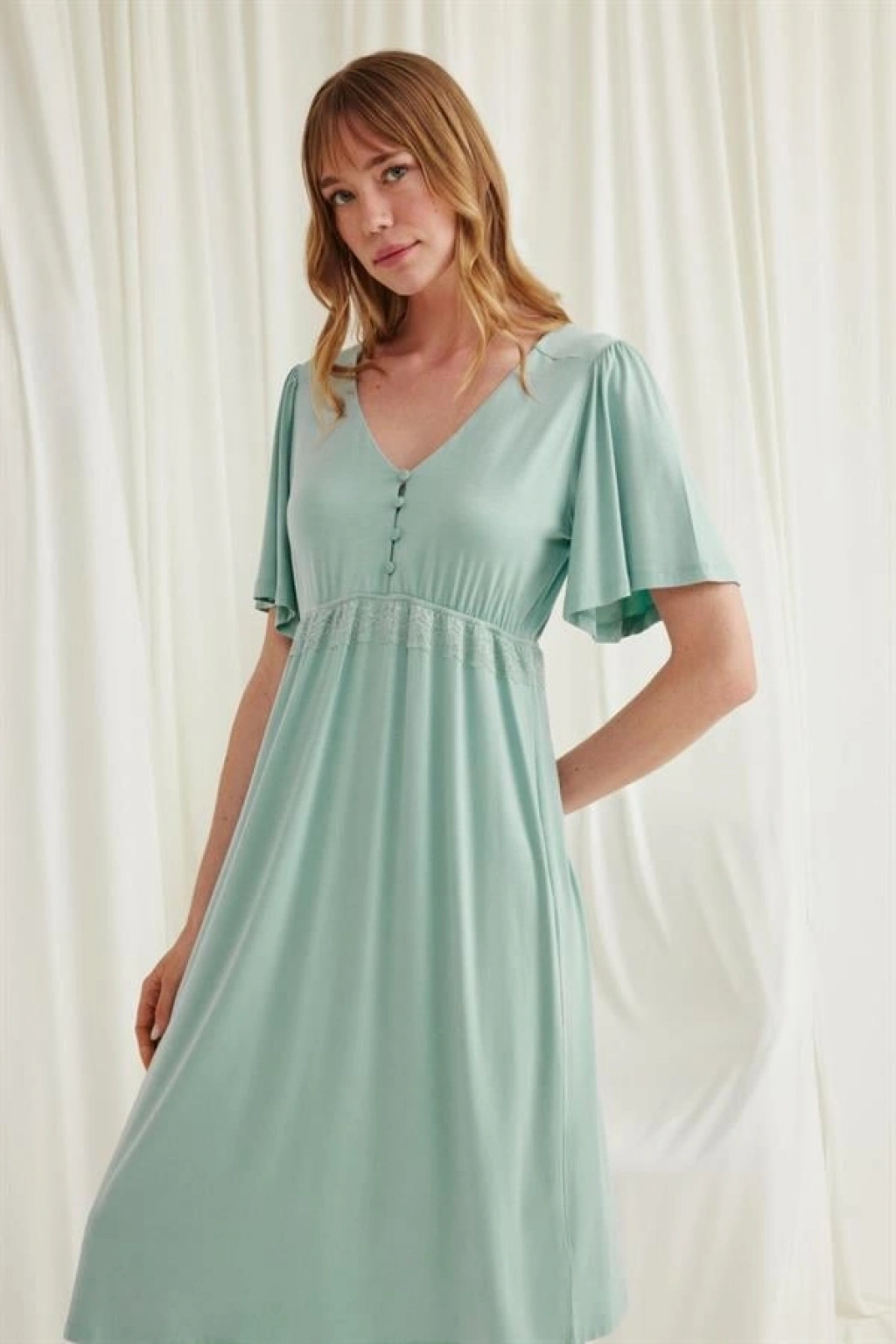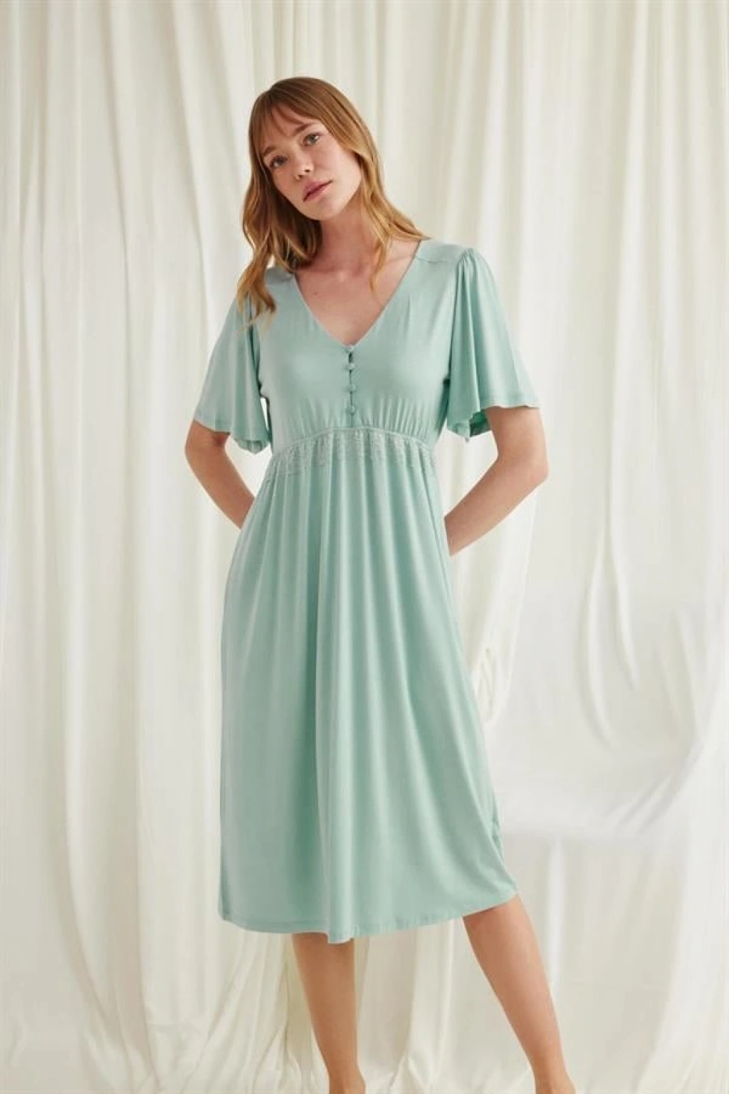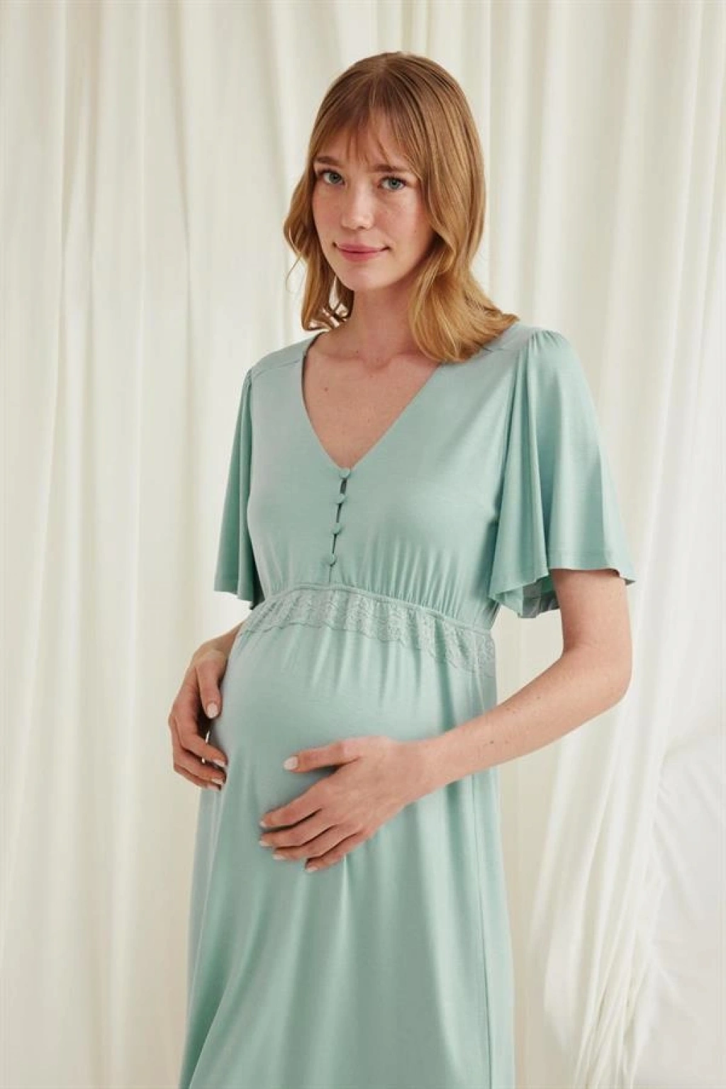 Amora Secret Dantelli Önü Düğmeli Hamile Lohusa Viskon Gecelik Kadın İç Giyim Rahat Kullanım