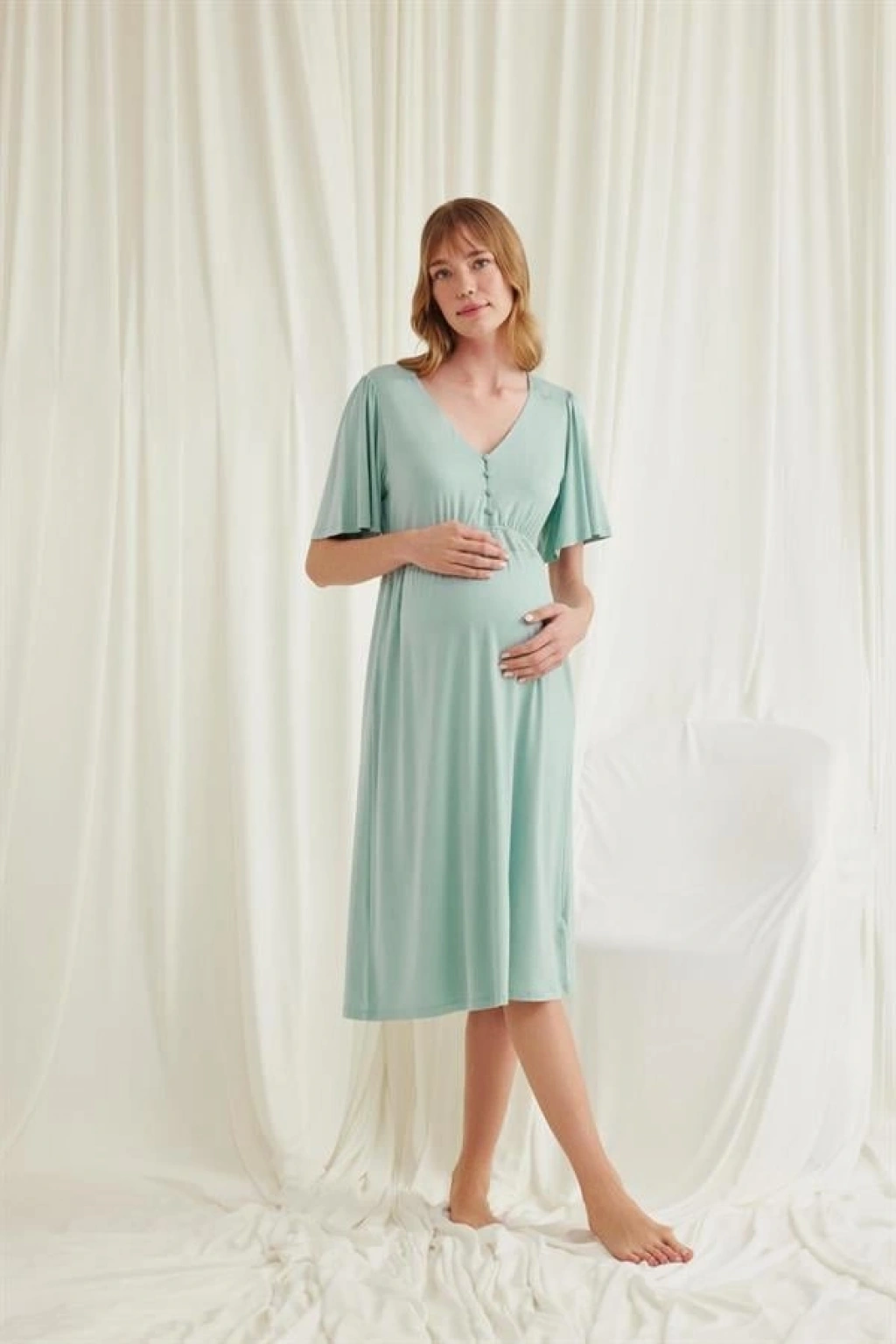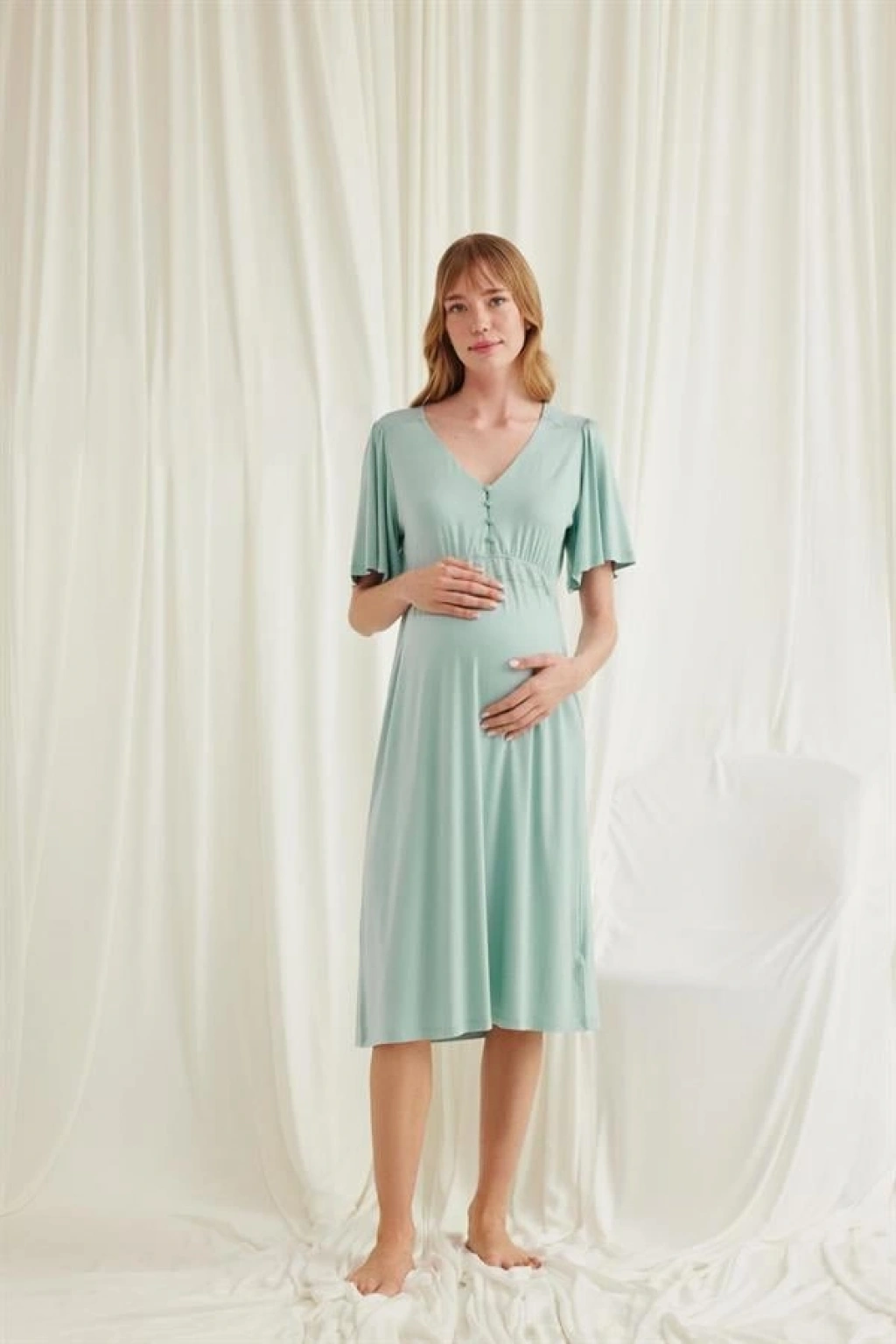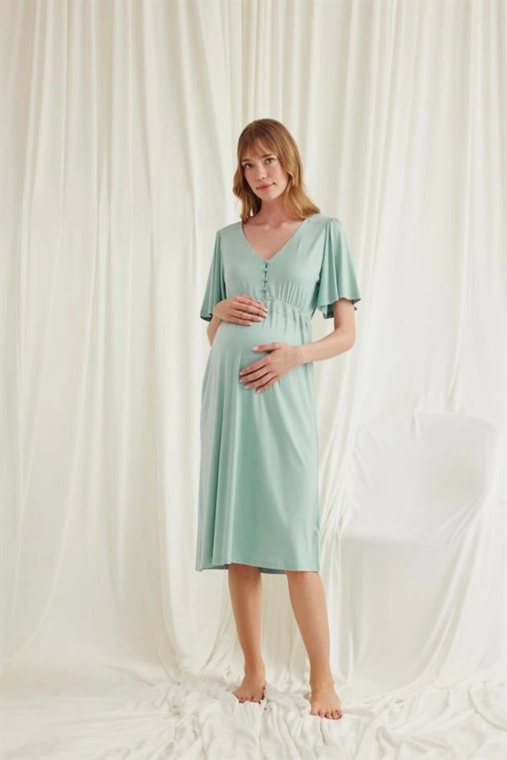 Amora Secret Dantelli Önü Düğmeli Hamile Lohusa Viskon Gecelik Kadın İç Giyim Rahat Kullanım