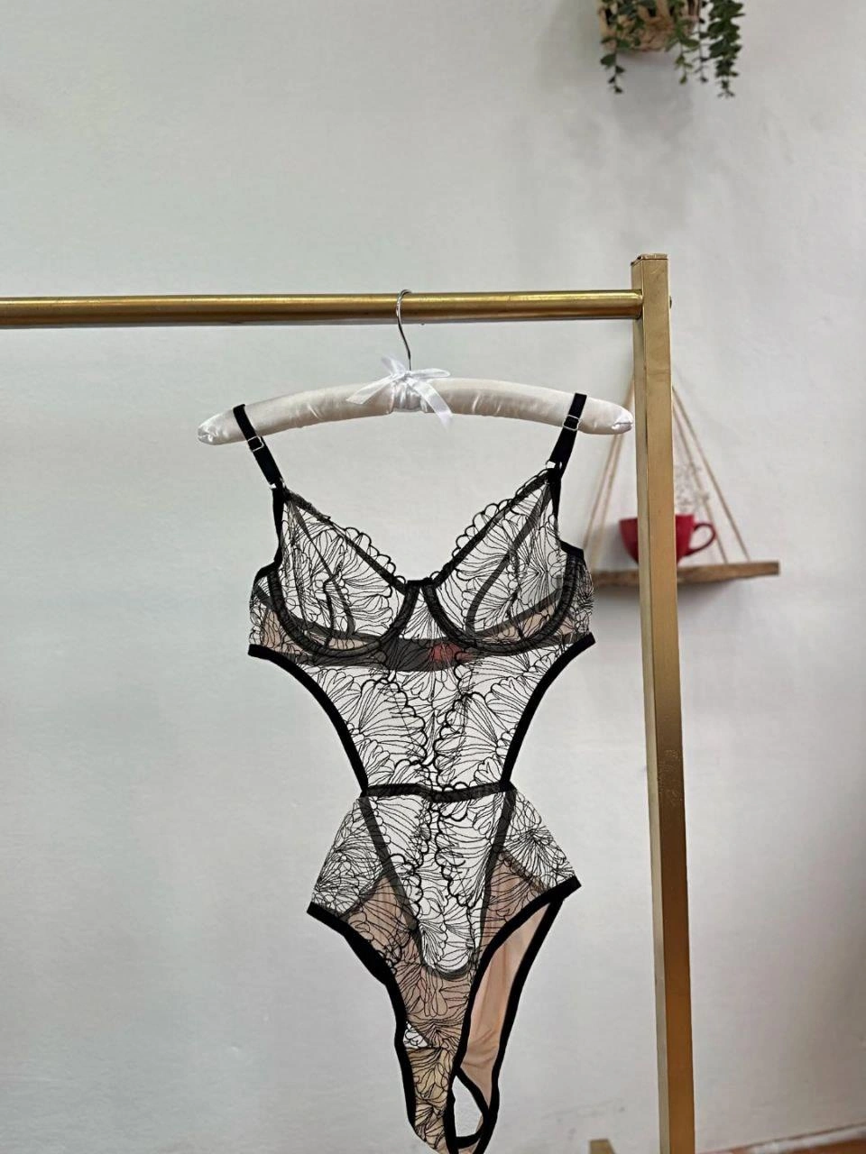 AmoraSecret AmoraSecret Desenli Ten Siyah Bodysuit