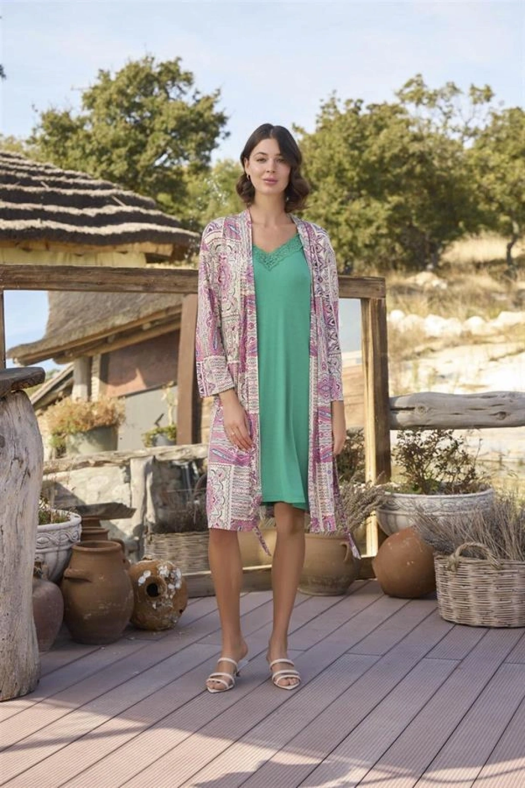 Amora Secret Etnik Deseni Ve Dantelli Sabahlık Takımı Kadın İç Giyim Şık Tasarım