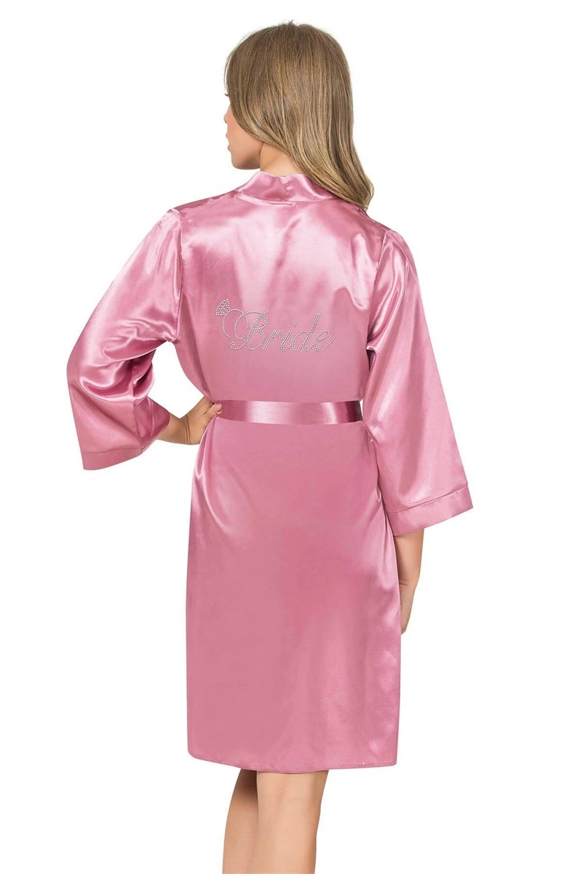 Aria's Closet Gül Kurusu Kısa Saten Bride Sabahlık