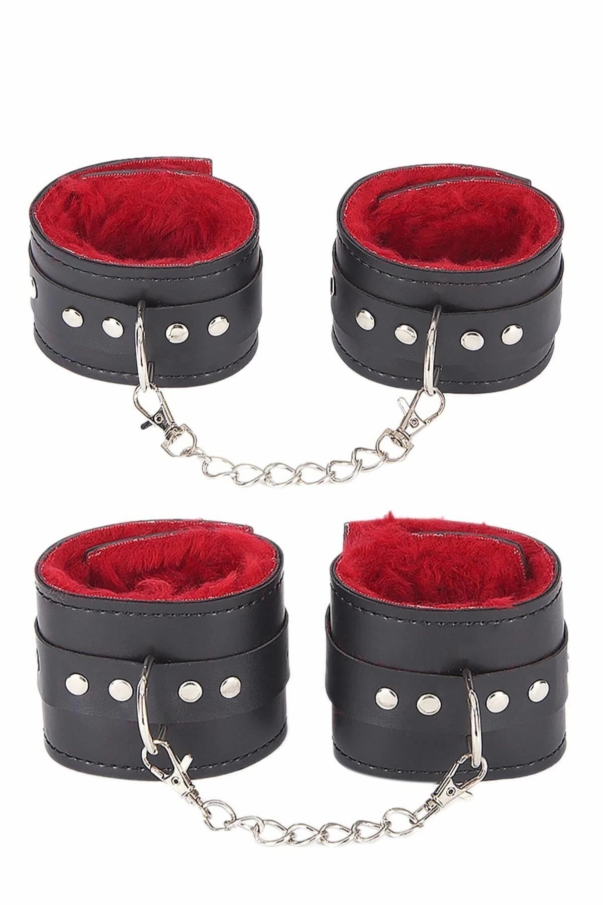 AmoraSecret AmoraSecret İçi Kırmızı Tüylü Kol Bacak Kelepce Set