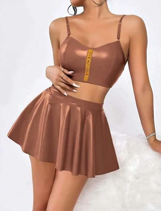 AmoraSecret AmoraSecret Kahverengi Etekli Fantezi Deri Şık Elbise