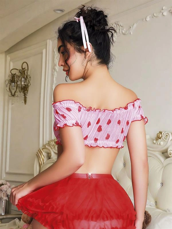 Amora Secret Kadın Fantazi İç Giyim Kalp Desenli Fantezi Kırmızı Gecelik - Şehvetli ve Zarif Tasarım