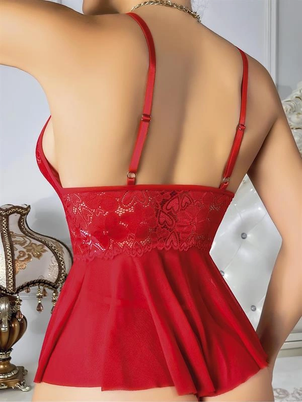 Amora Secret Kadın Fantazi İç Giyim Kırmızı Dantel İşlemeli Fantezi Body Gecelik - Şehvetli ve Zarif Tasarım