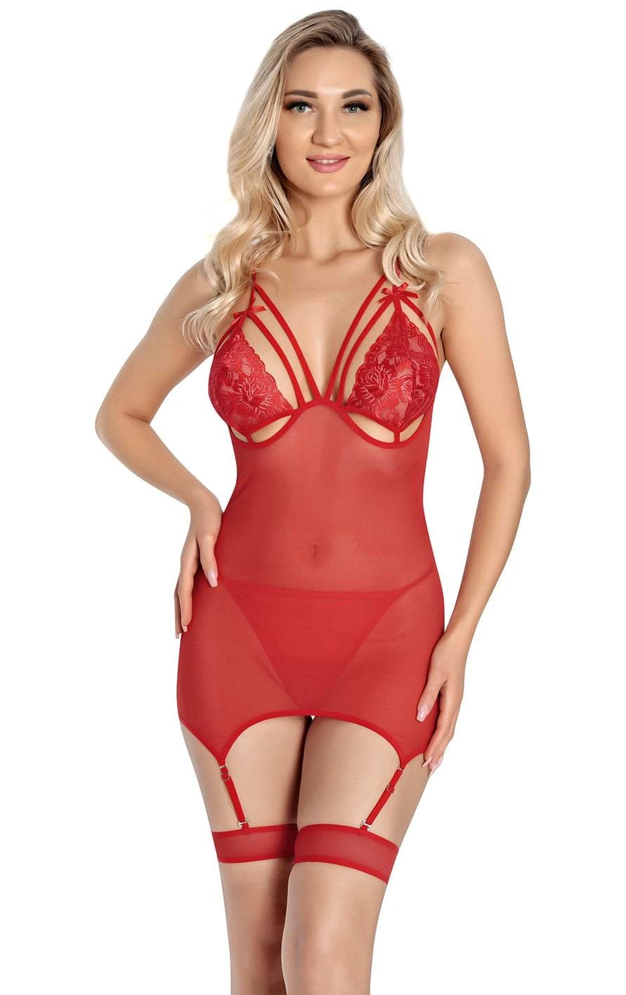 ❤️ Kırmızı Dantel İşlemeli Göğüs İp Detaylı Fantezi Jartiyer Takımı ❤️