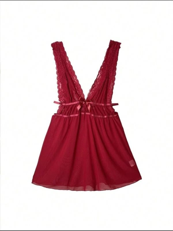 Kırmızı Dantel İşlemeli Tül Fantezi Gecelik, canlı kırmızı rengi ve zarif dantel detaylarıyla özel anlarınıza çekicilik katar. Hafif tül kumaşı vücudu nazikçe sararken, feminen ve baştan çıkarıcı bir siluet oluşturur.