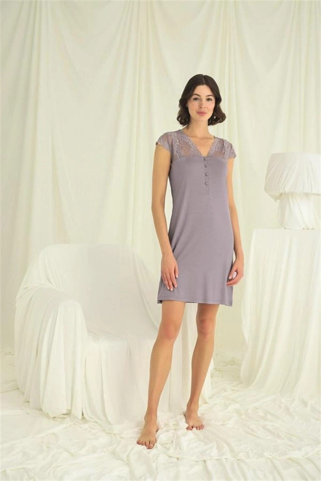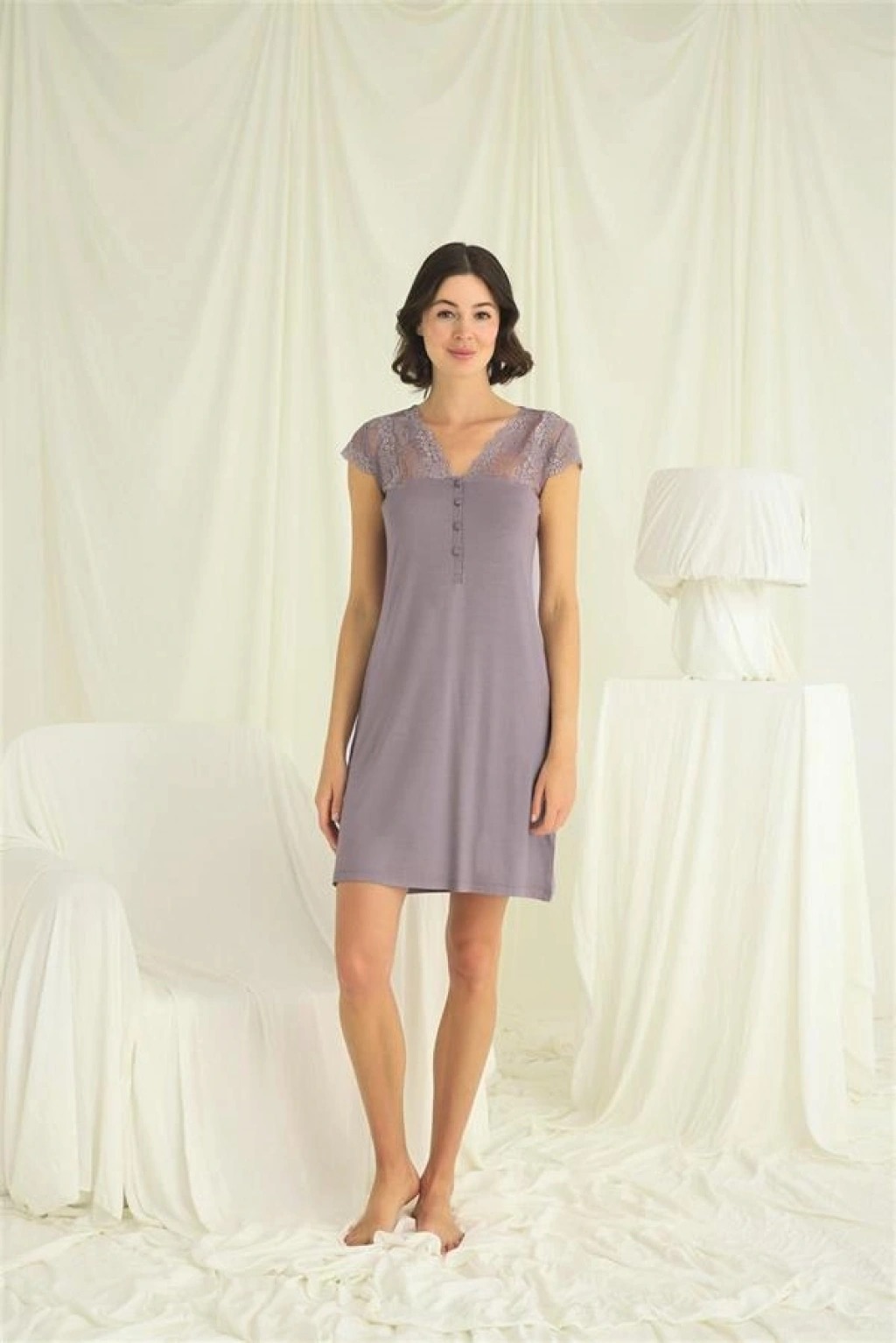 Amora Secret Yakası Dantelli Kısa Kollu Gecelik Kadın İç Giyim Rahat Kullanım