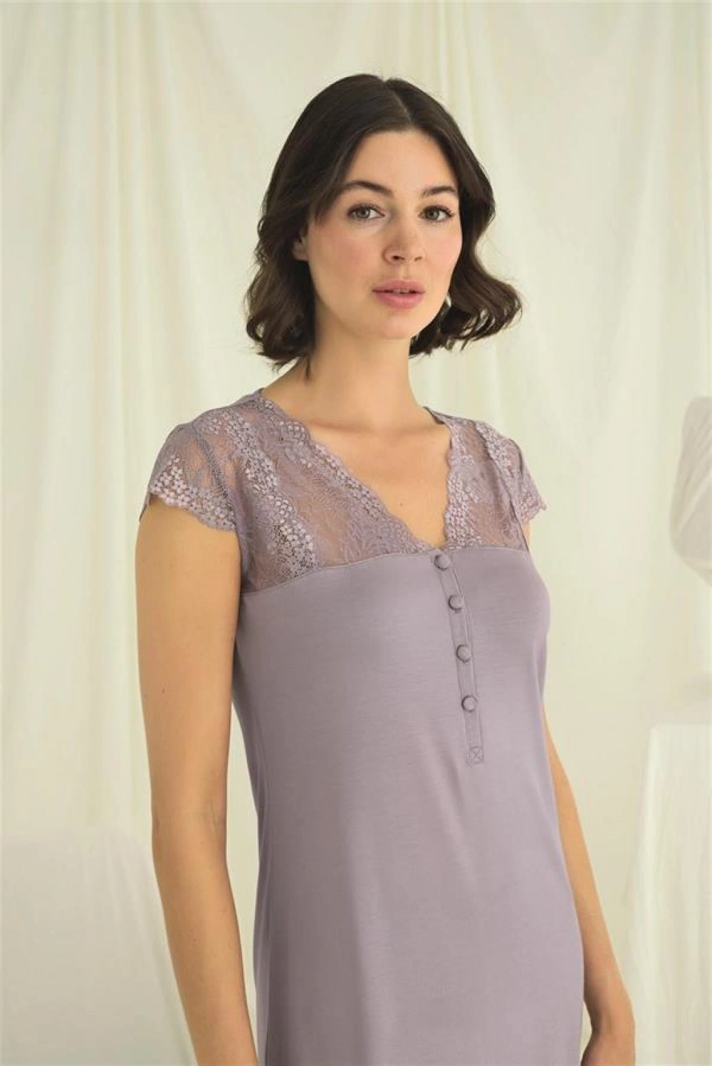 Amora Secret Kolu Omzu Ve Yakası Dantelli Önü Düğmeli Gecelik Kadın İç Giyim Şık Tasarım