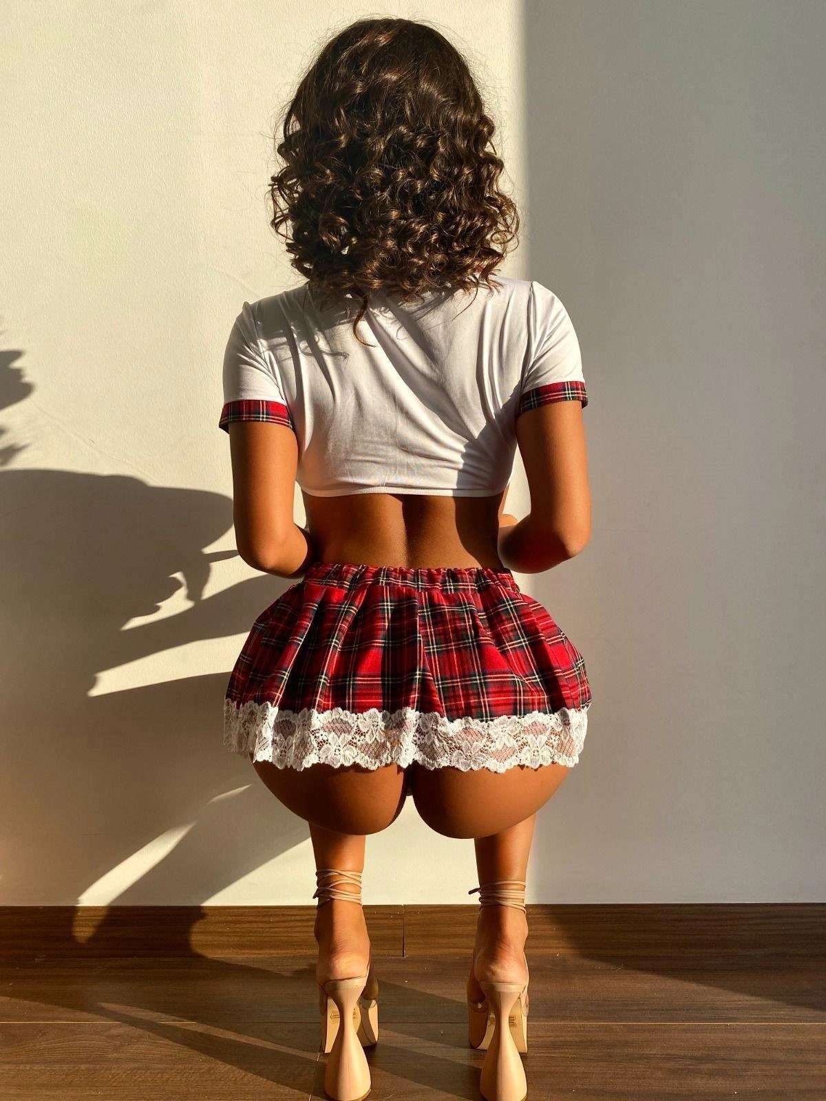 AmoraSecret AmoraSecret Ekose Desenli Mini Etekli Dantel İşlemeli Fantezi Liseli Kostüm
