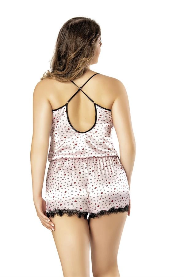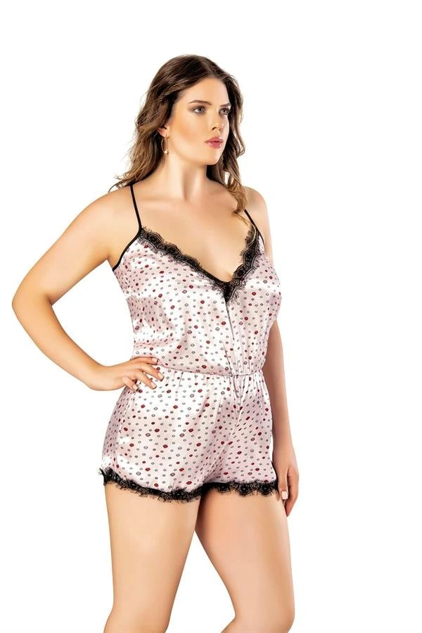 Amora Secret Kadın Fantazi İç Giyim Öpücük Desenli Dantel İşlemeli Fantezi Büyük Beden Saten Babydoll Gecelik - Şehvetli ve Zarif Tasarım