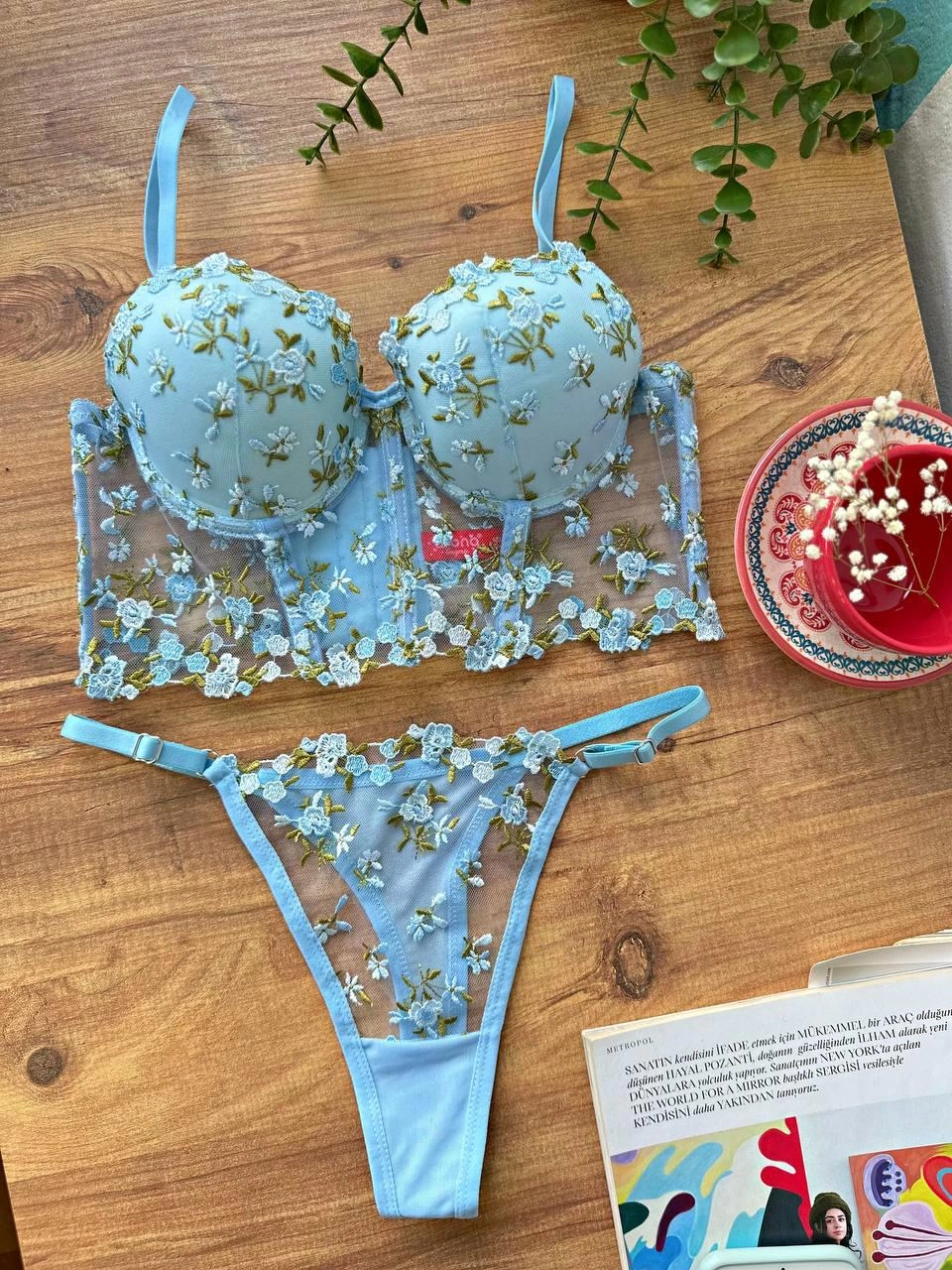 Aria's Closet Özel Tasarım Mavi Dantel İşlemeli Çiçek Desenli Destekli Bralet Takımı, zarif ve şık tasarımı ile dikkat çekiyor. Bu özel tasarım bralet takımı, mavinin huzur veren tonlarıyla dikkat çekerken, dantel işlemeli detaylarıyla da göz kamaştırıyor. Çiçek desenli detaylarıyla da feminen bir hava katan bu takım, sadece görünümüyle değil, aynı zamanda destekli yapısıyla da konfor sunuyor. Aria's Closet'un özel tasarımı olan bu bralet takımı, hem günlük kullanıma hem de özel günlerdeki kombinlerinize şıklık katacak. Aria's Closet'un özgün tasarımlarından biri olan bu takımı, sitemizden inceleyebilir ve hemen satın alabilirsiniz.