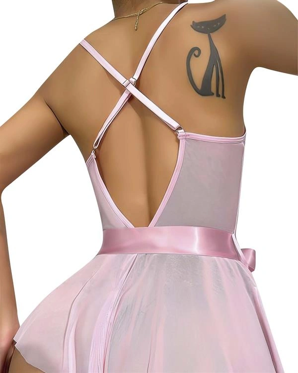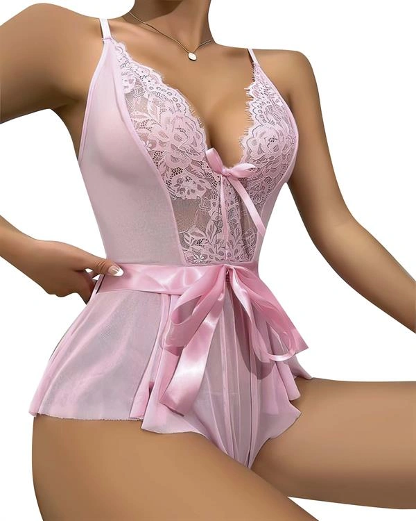 Amora Secret Kadın Fantazi İç Giyim Pembe Dantel İşlemeli Kurdelalı Fantezi Tül Babydoll - Şehvetli ve Zarif Tasarım