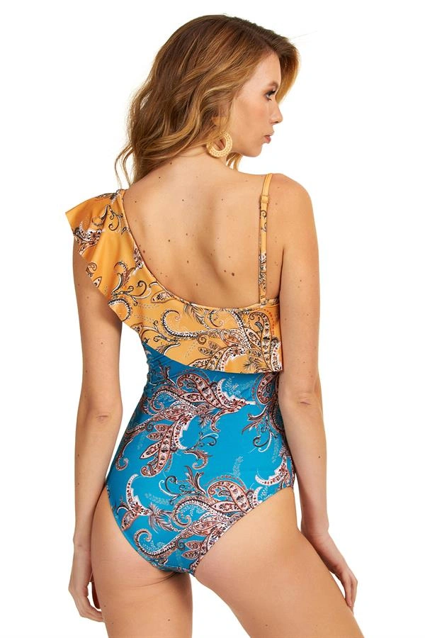 Amora Secret Kadın Fantazi İç Giyim Şal Desenli Tek Omuz Fırfırlı Mayo - Şehvetli ve Zarif Tasarım