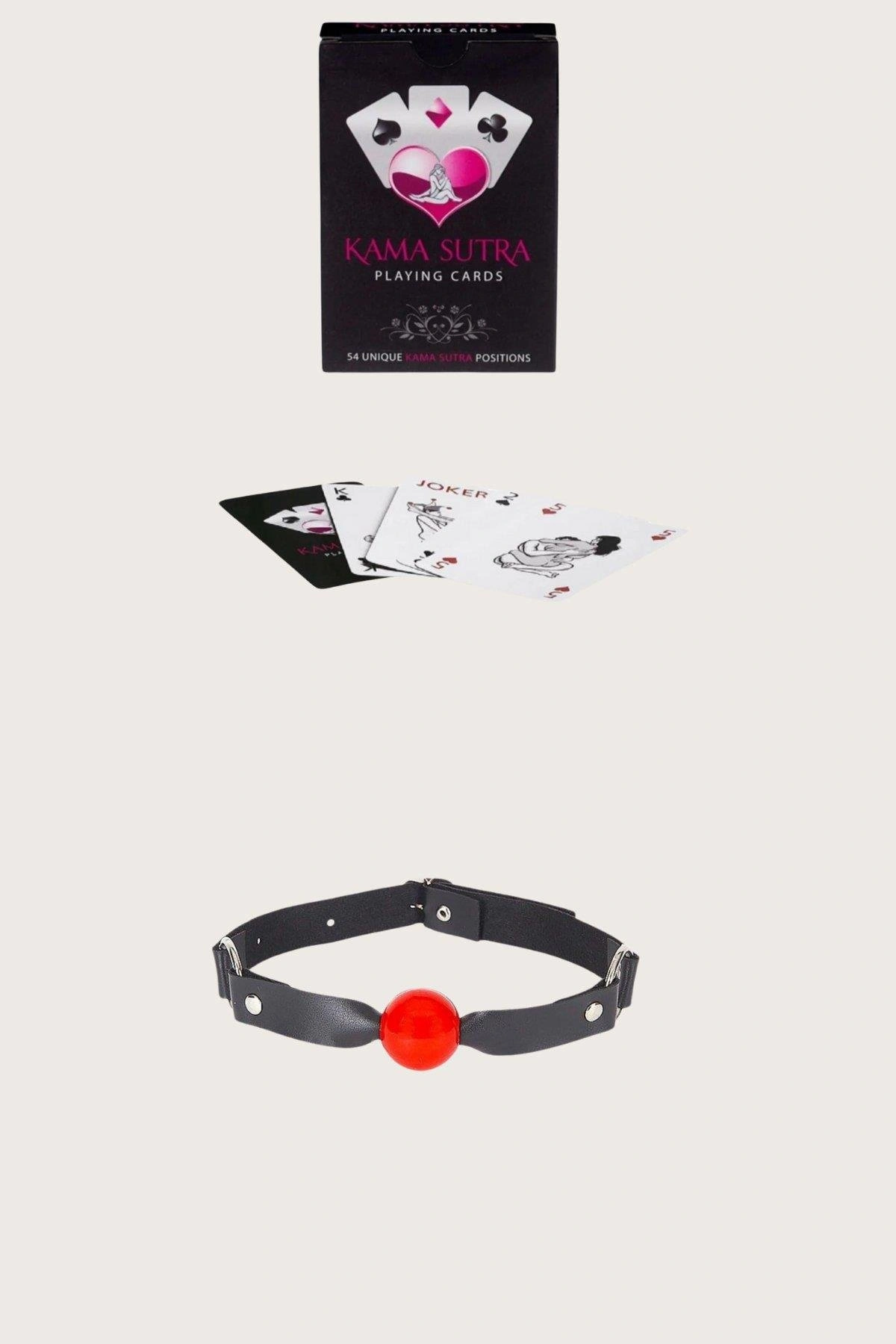 AmoraSecret AmoraSecret Sexy Görselli Oyun Kartı Kama Sutra Siyah Kırmızı Ağız Topu Set