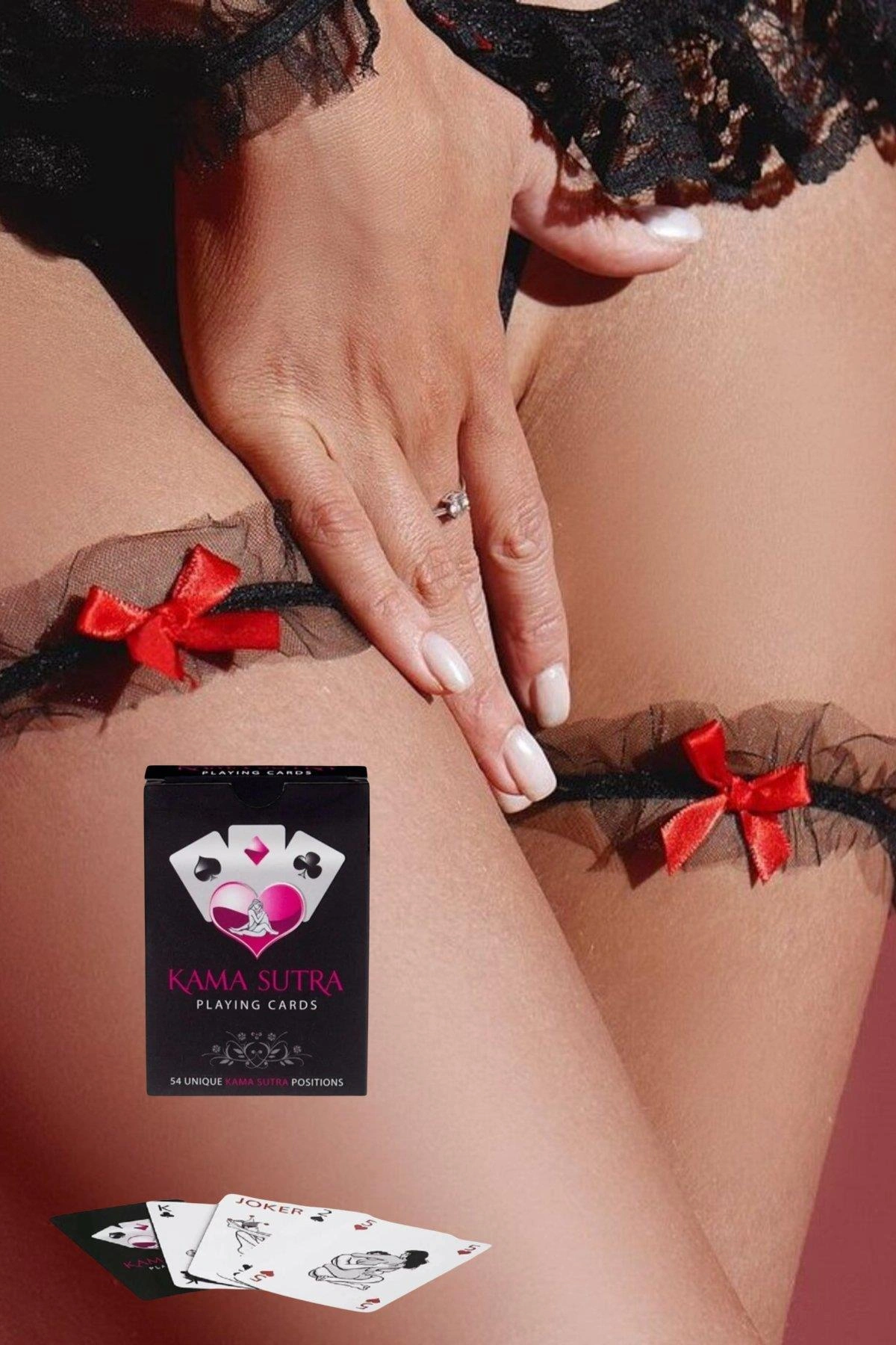 AmoraSecret AmoraSecret Sexy Görselli Oyun Kartı Kama Sutra Siyah Kırmızı Bacak Bant Set