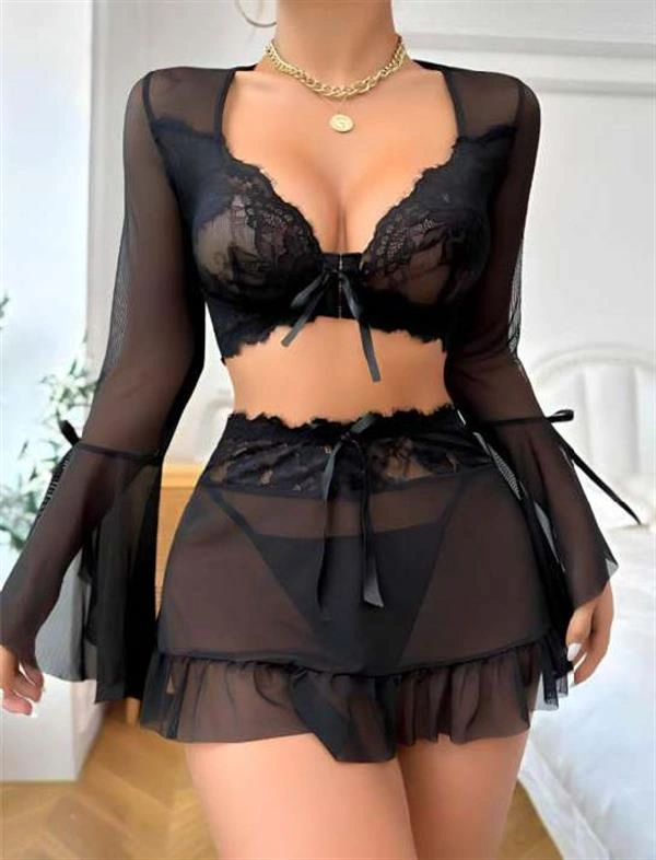 Amora Secret Kadın Fantazi İç Giyim Siyah Dantelli Etekli Fantezi Tül Bolero Sütyen Takım - Şehvetli ve Zarif Tasarım