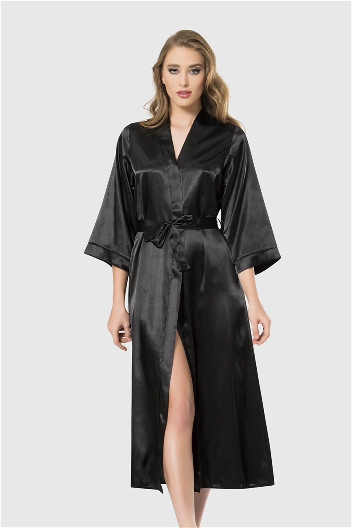 Aria's Closet Siyah Uzun Saten Sabahlık