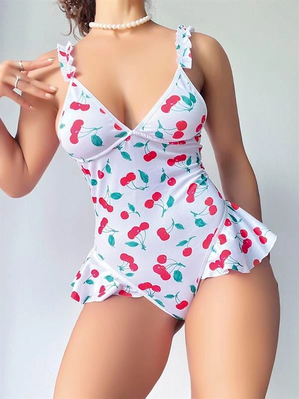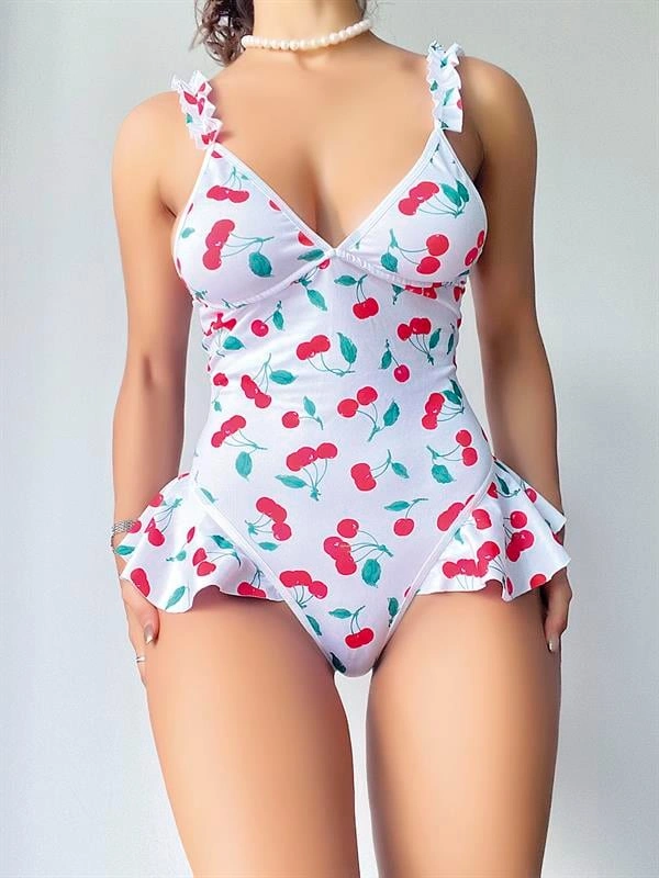 Amora Secret Kadın Fantazi İç Giyim Vişne Desenli Fantezi Body - Şehvetli ve Zarif Tasarım