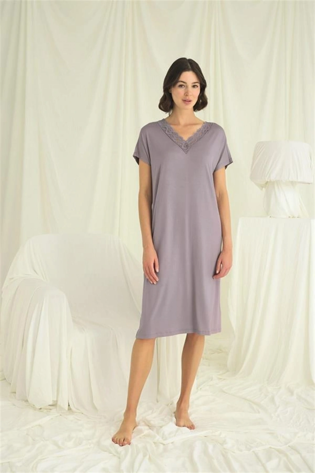 Amora Secret Kısa Kollu Ve Dantelli V Yaka Gecelik Kadın İç Giyim Rahat Kullanım