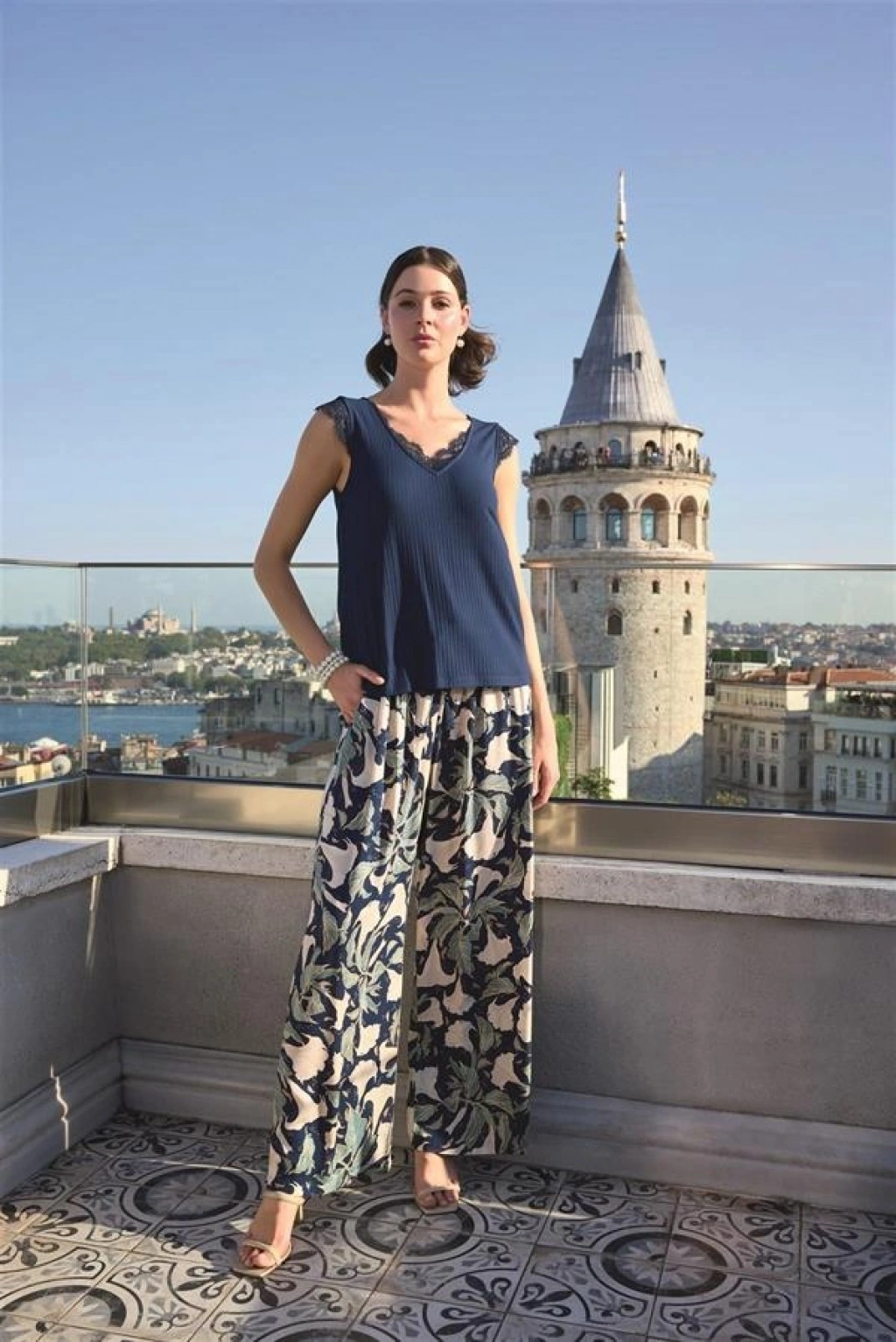 Amora Secret Yaprak Desenli Ve Dantelli 3'lü Pijama Takımı Kadın İç Giyim Özel Gün