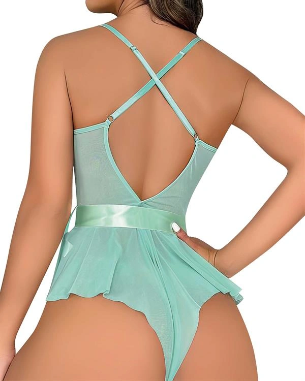 ? Yeşil Dantel İşlemeli Kurdelalı Fantezi Tül Babydoll ?