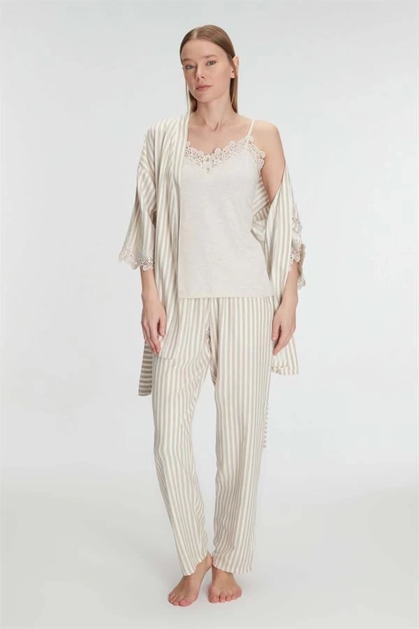 AmoraSecret 11215 Kadın Sabahlık Atlet Pantolon Takım 3lü Pamuklu Gecelik Set, sabahları uyanır uyanmaz üzerinize alabileceğiniz yumuşak ve zarif bir sabahlıktır. 48 % Poliester 47 % Pamuk 5 % Elastan sayesinde hafif ve nefes alabilen bir yapı sunar, cildinize dost bir dokunuş sağlar. Günün ilk ışıklarında ya da banyo sonrası rahatlıkla kullanabileceğiniz bu sabahlık, evinizde konforunuzu artırır. Sabahlıklar, evde geçirilen zamanların keyfini çıkarırken zarafetinizi de ön plana çıkarır. Bu ürün, sade ama şık tasarımı ile her zaman elinizin altında olacak. Yumuşak dokusu sayesinde sabah rutininizi daha keyifli hale getirecek ve sizi gün boyu rahat ettirecektir. Şık detayları ve kaliteli dikişi ile bu sabahlık, uzun yıllar boyunca size eşlik edecek. Kaliteli kumaşı sayesinde uzun süreli kullanımda bile yıpranma göstermez. Farklı beden seçenekleri ile herkesin rahatlıkla kullanabileceği bir ürün olarak öne çıkar. Kolay yıkanabilir özelliği ile bakım konusunda da zahmetsizdir. Rahat kesimi ve esnek yapısı ile her vücut tipine uygun bir kullanım sunar. Rahat kesimi ve esnek yapısı ile her vücut tipine uygun bir kullanım sunar. Günlük giyimde, rahatlığı ve şıklığı ön planda tutanlar için idealdir. Farklı beden seçenekleri ile herkesin rahatlıkla kullanabileceği bir ürün olarak öne çıkar. Farklı beden seçenekleri ile herkesin rahatlıkla kullanabileceği bir ürün olarak öne çıkar. Kolay yıkanabilir özelliği ile bakım konusunda da zahmetsizdir. Kolay yıkanabilir özelliği ile bakım konusunda da zahmetsizdir. Bu ürün, aynı zamanda mükemmel bir hediye seçeneği olabilir. Rahat kesimi ve esnek yapısı ile her vücut tipine uygun bir kullanım sunar. Şık ve modern tasarımıyla gardırobunuza farklı bir hava katacaktır. Şık ve modern tasarımıyla gardırobunuza farklı bir hava katacaktır.