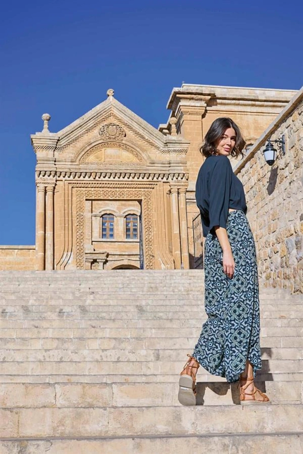 Alt: Etnik desenlidir, yırtmaçlıdır, dokuma kumaştır.