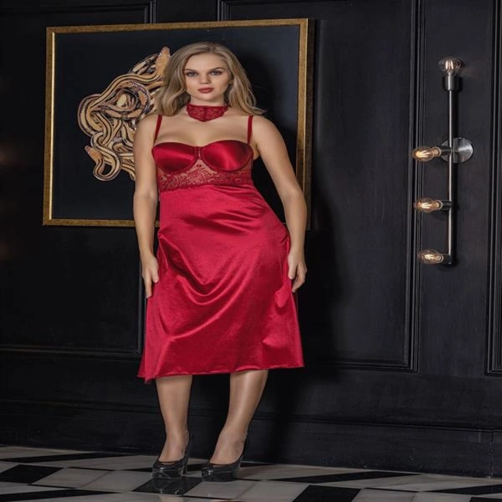 AMORA SECRET KIRMIZI YIRTMAÇ DEKOLTELI DANTEL IŞLEMELI FANTEZI GECELIK