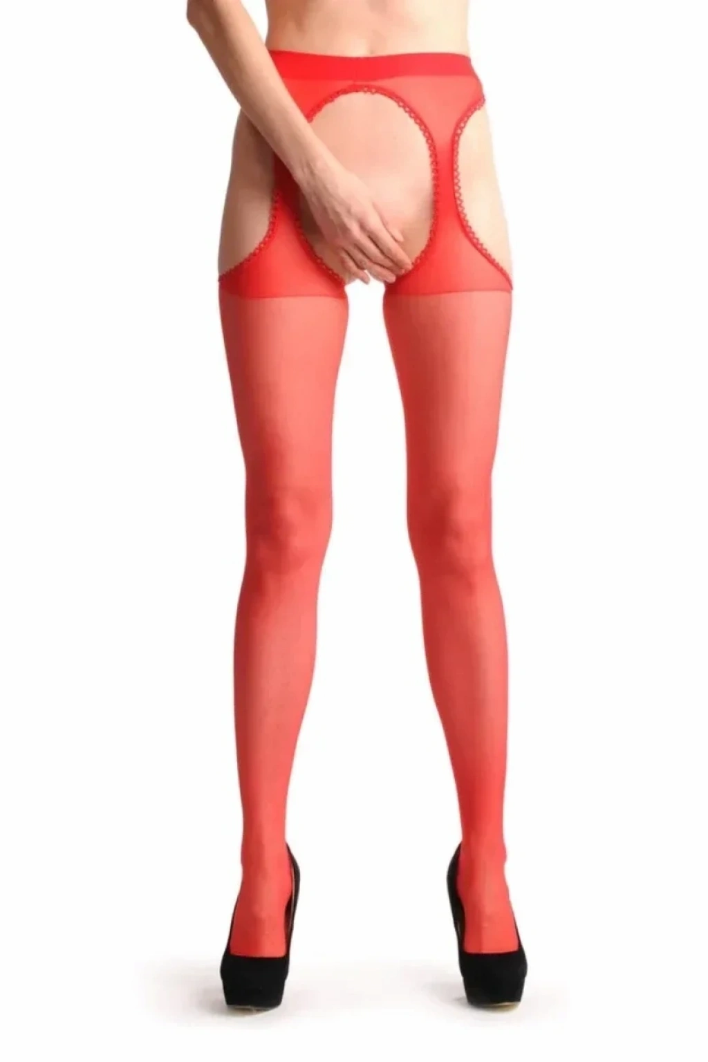 KIRMIZI KENARLARI DANTELLI ÖZEL BÖLGESI AÇIK KÜLOTLU ÇORAP