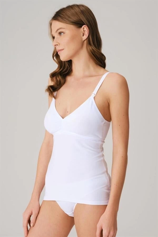 Yeni doğum yapan annelerin ihtiyaçlarına özel olarak tasarlanan bu beyaz emzirme atleti, modal ve pamuk karışımı kumaşıyla yumuşacık bir dokunuş sunar. Önden açılan klipsli yapısı sayesinde emzirme anlarında büyük kolaylık sağlar. Şıklığı ve sadeliği bir arada isteyen anneler için ideal.