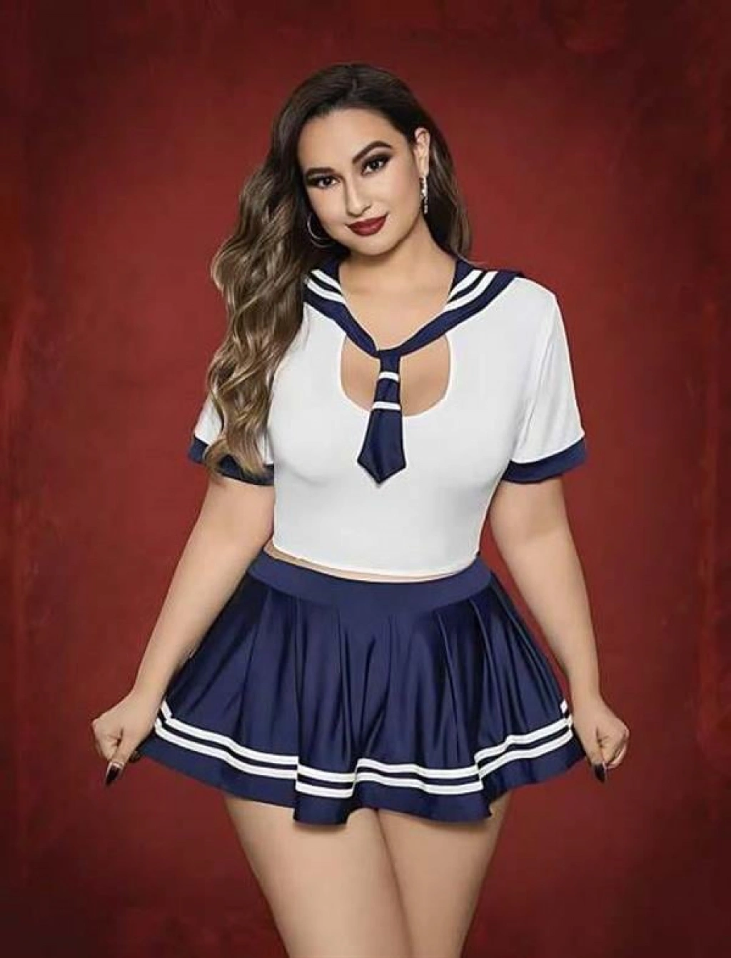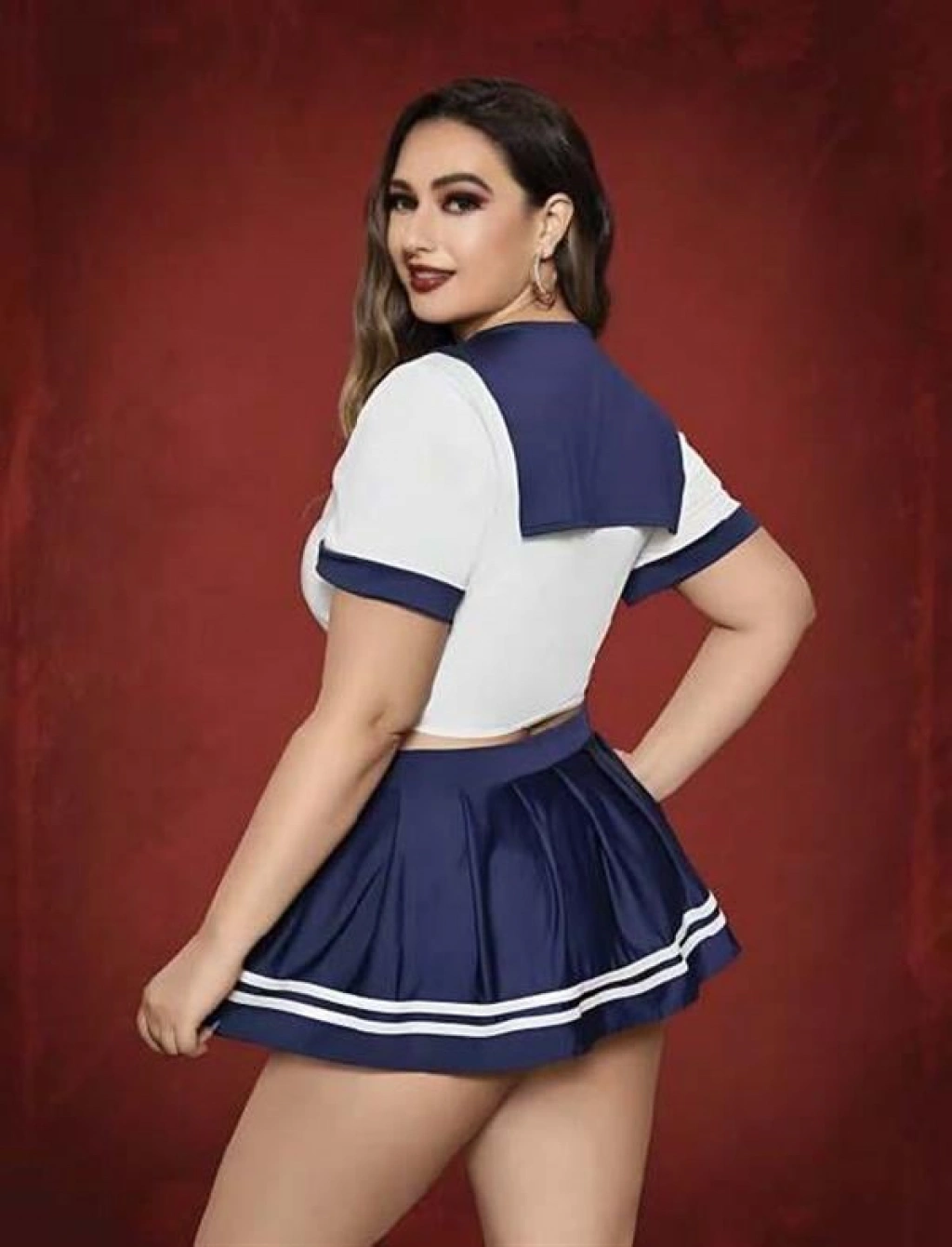 ÖZEL TASARIM BÜYÜK BEDEN LACIVERT MINI ETEKLI FANTEZI DENIZCI KOSTÜMÜ