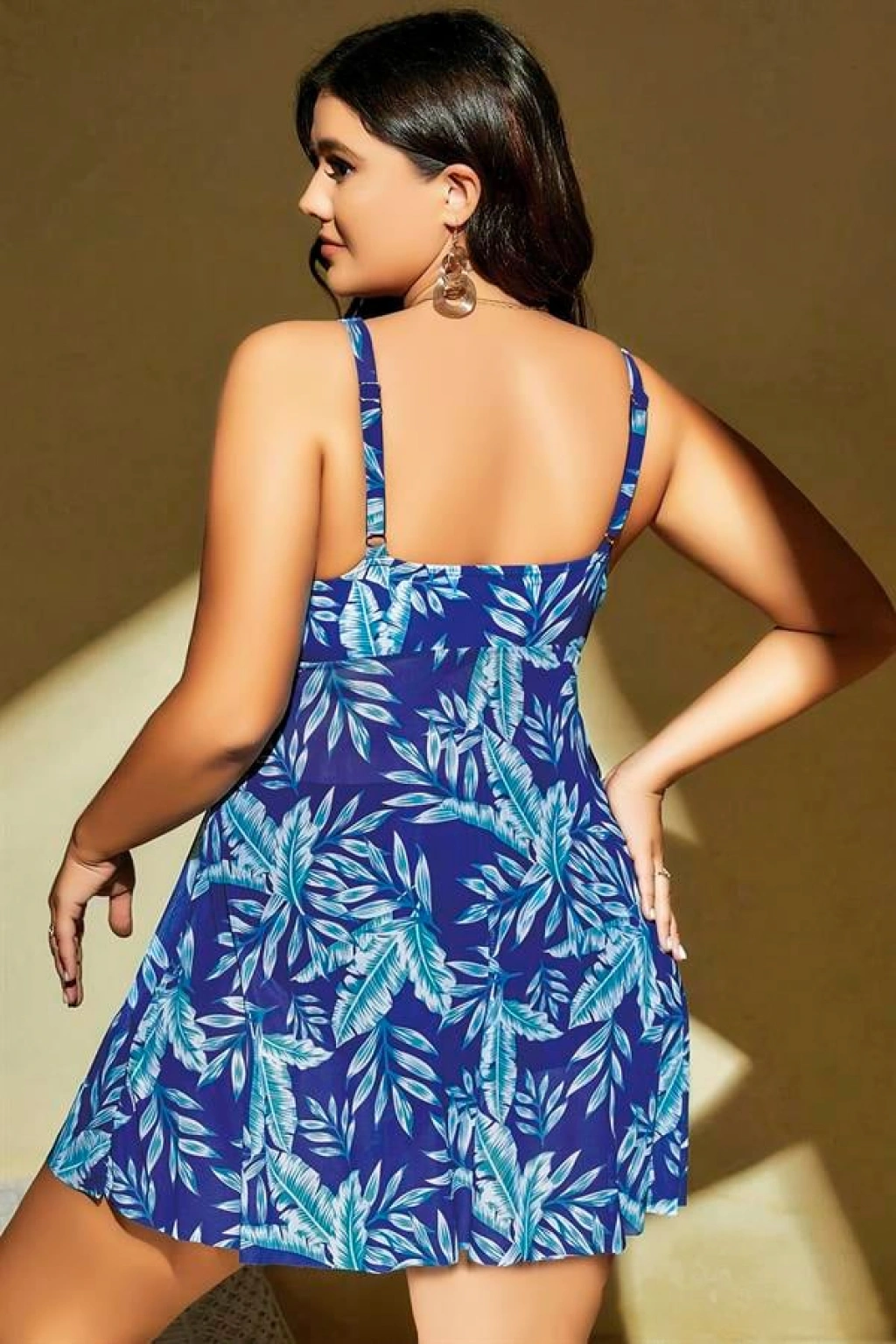 ÖZEL TASARIM BÜYÜK BEDEN MAVI ÜSTÜNE YAPRAK DESENLI YIRTMAÇLI GECELIK