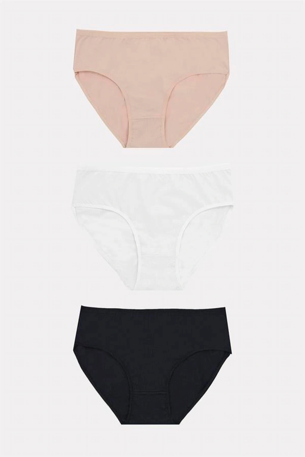 ÖZEL TASARIM BÜYÜK BEDEN PAMUKLU SIYAH BEYAZ TEN RENGI 3'LÜ KÜLOT