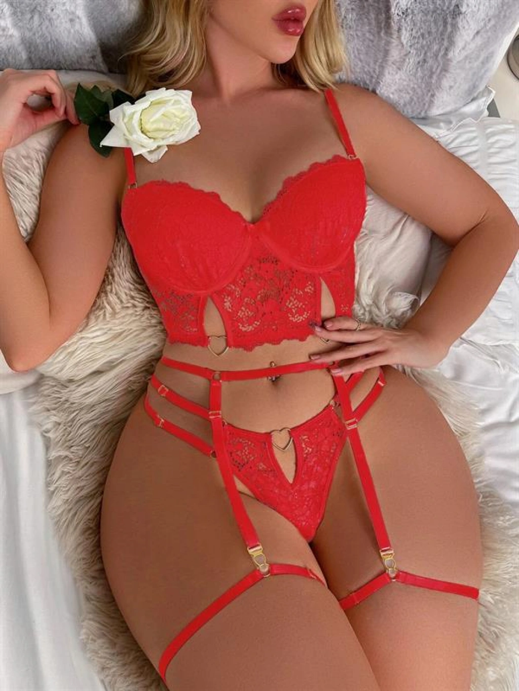 ÖZEL TASARIM KIRMIZI DANTELLI JARTIYER FANTEZI SEKSI BÜSTIYER TAKIMI