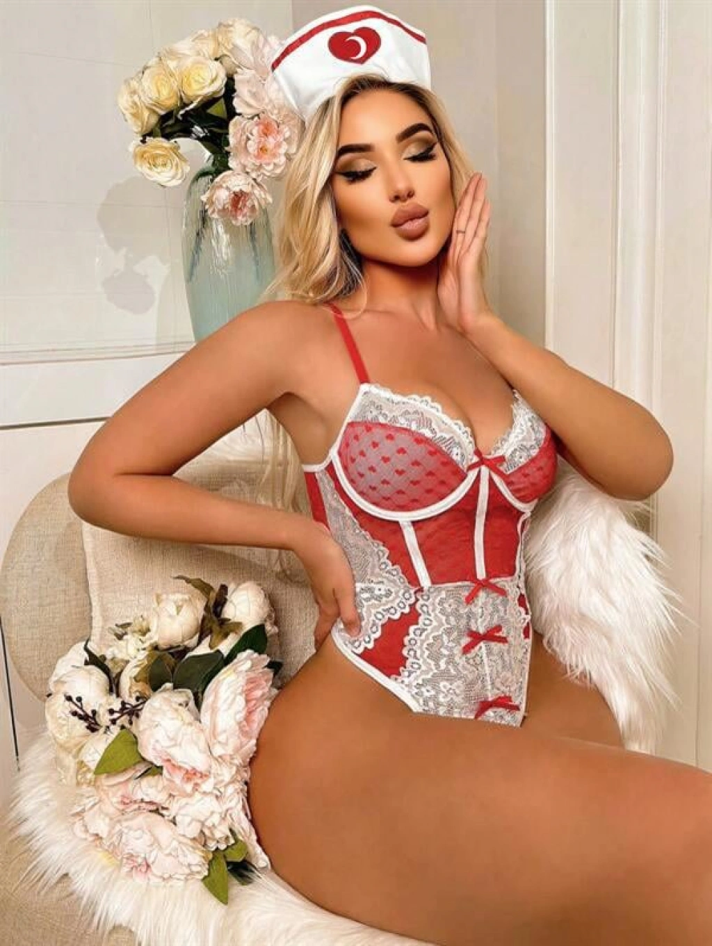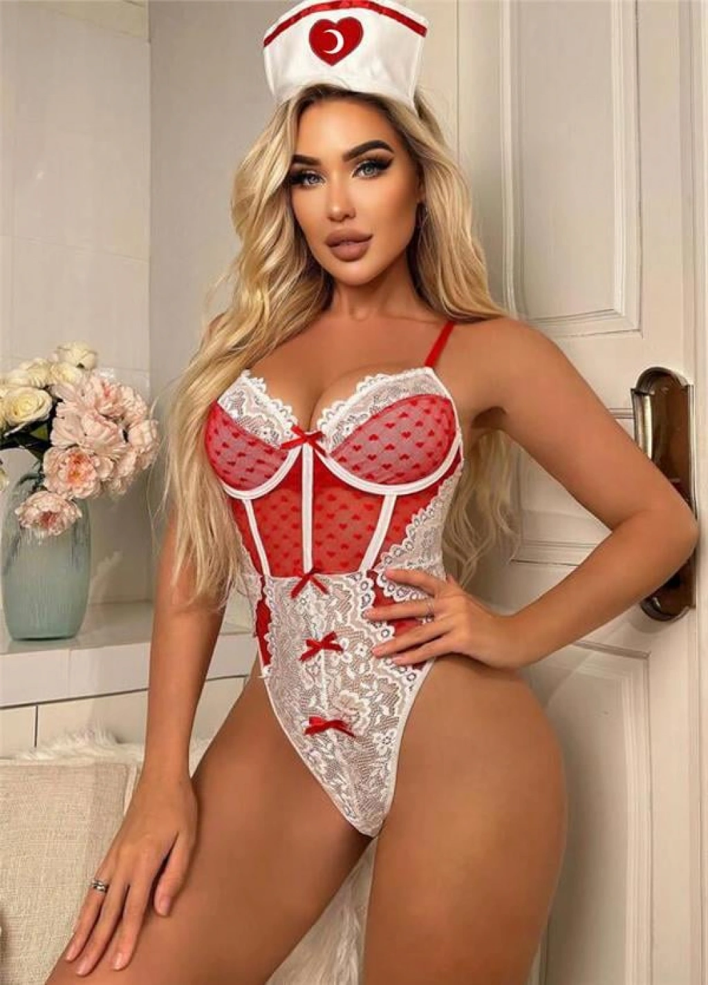 ÖZEL TASARIM KIRMIZI FANTEZI BODY HEMŞIRE KOSTÜMÜ