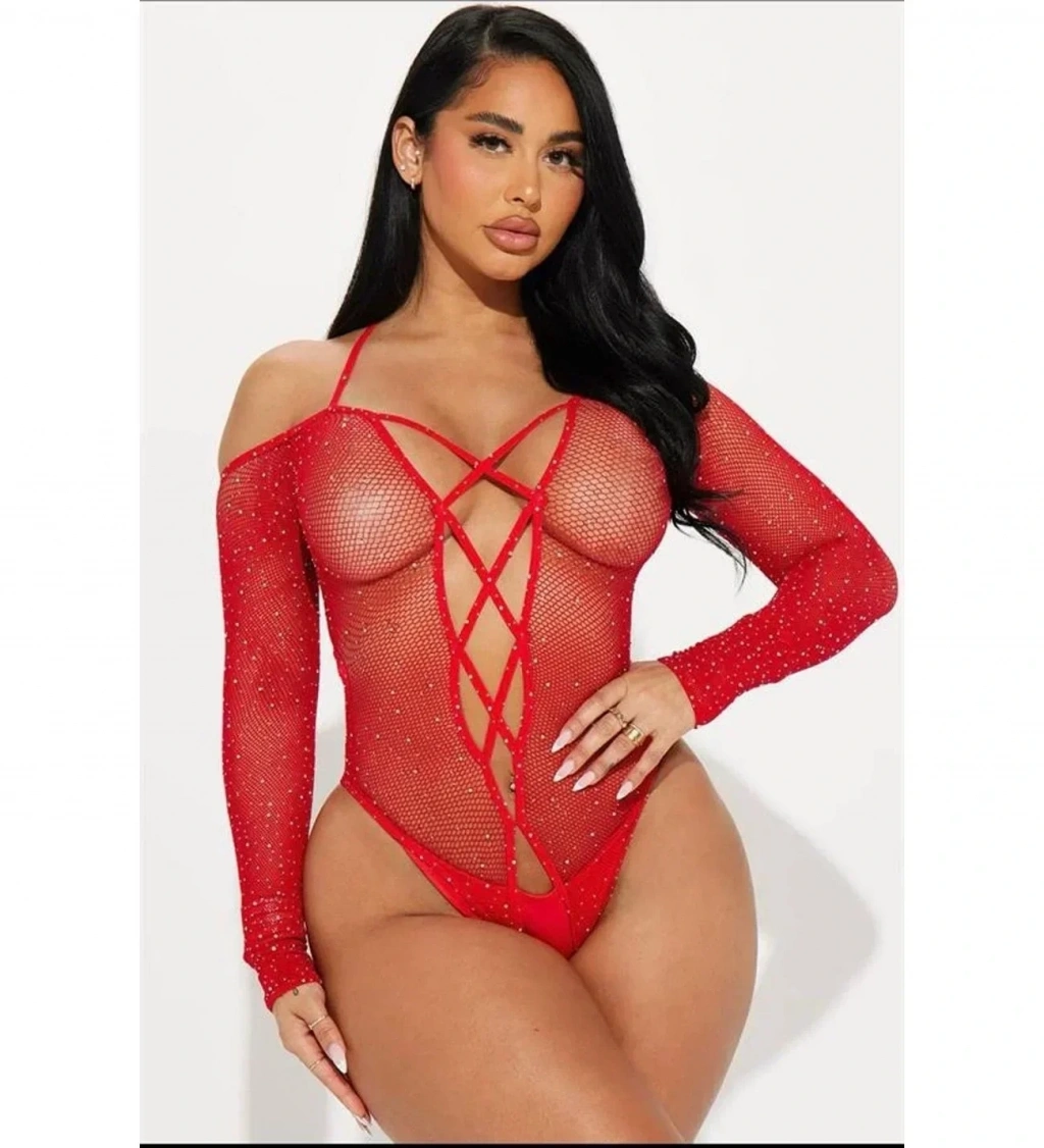 ÖZEL TASARIM ÖZEL TASARIM KIRMIZI TAŞLI FANTEZI VÜCUT ÇORABI